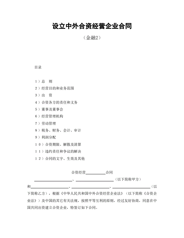 中外合资经营企业合同(金融2)