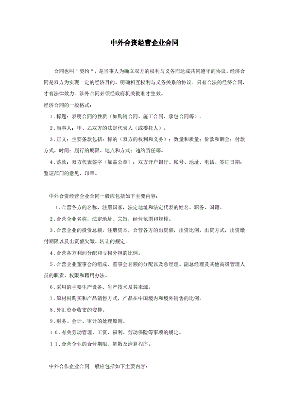 中外合作经营企业合同