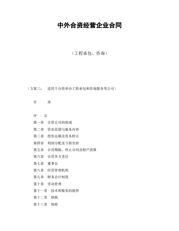 中外合资经营企业合同(工程承包、咨询)