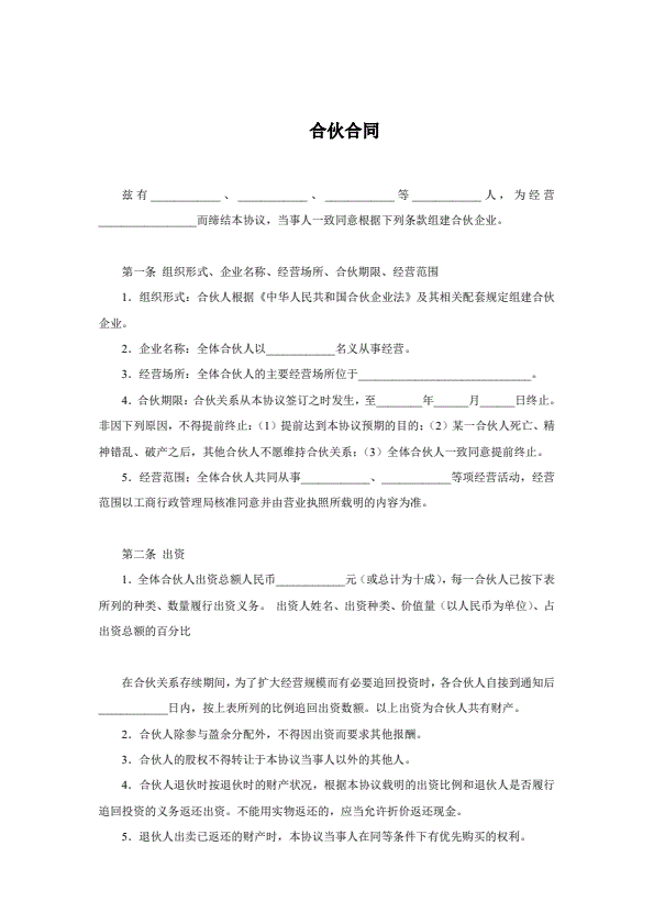 合伙企业合伙人合同