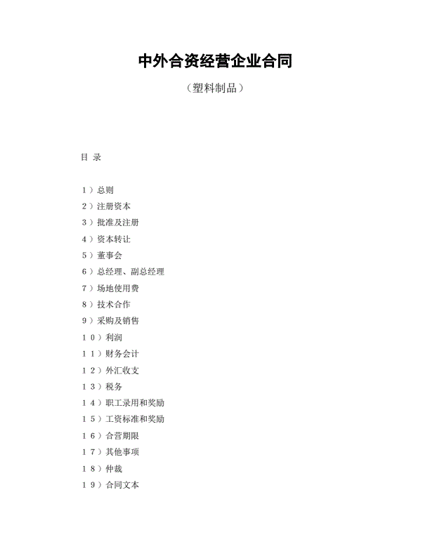 中外合资经营企业合同(塑料制品)