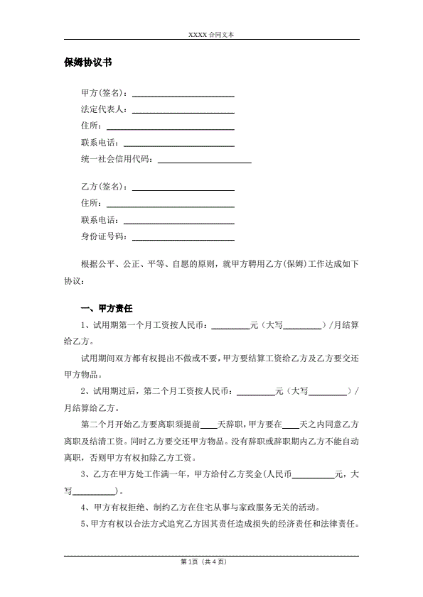保姆合同