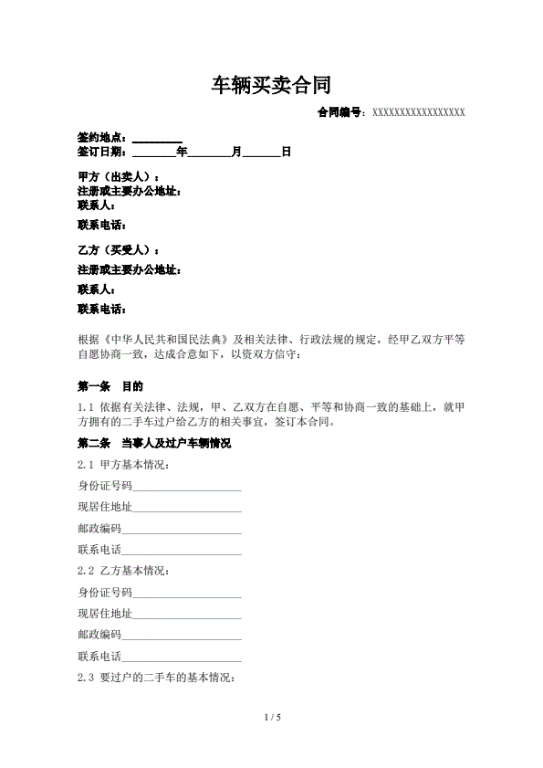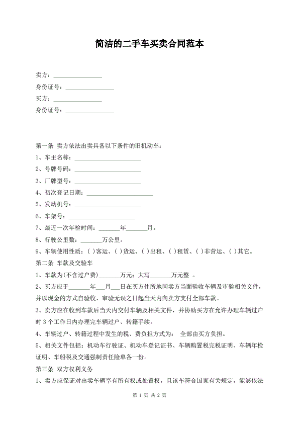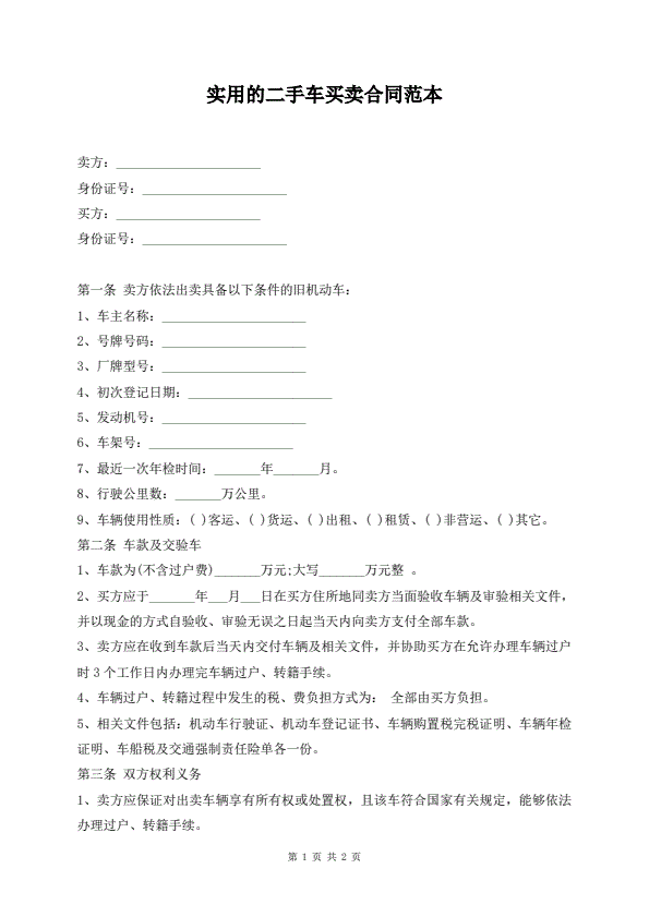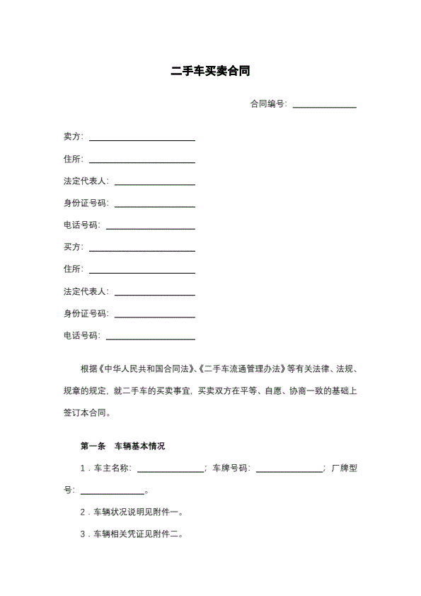 二手车买卖合同