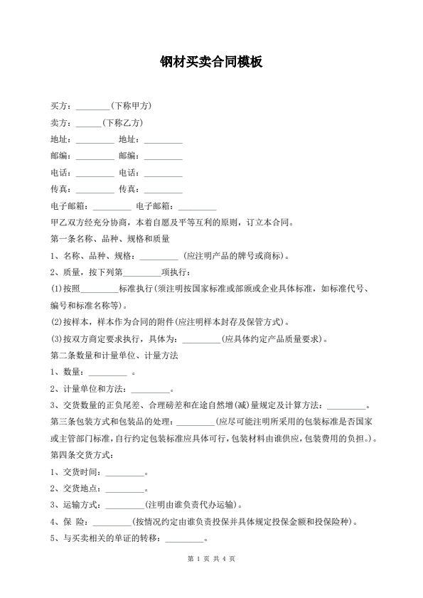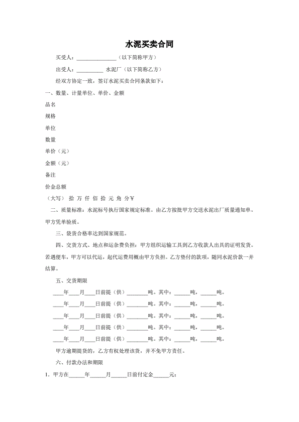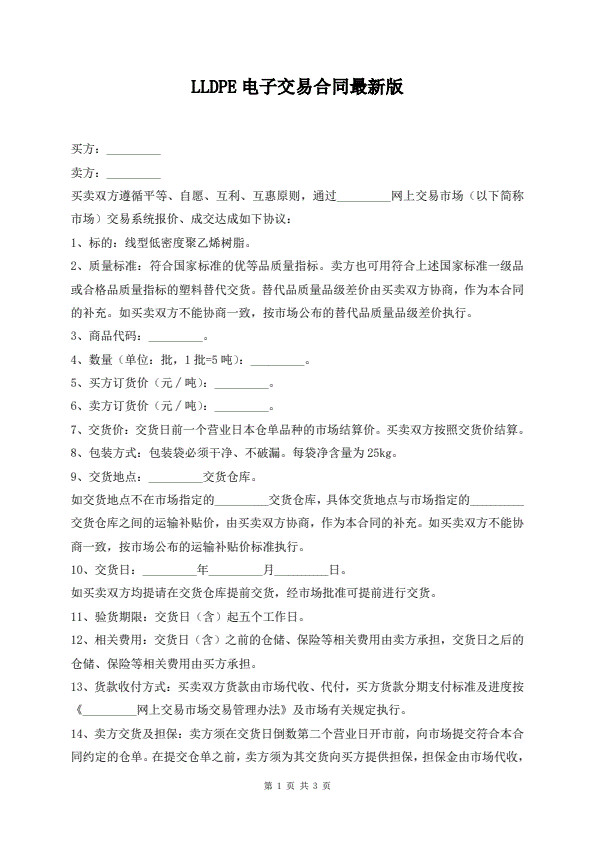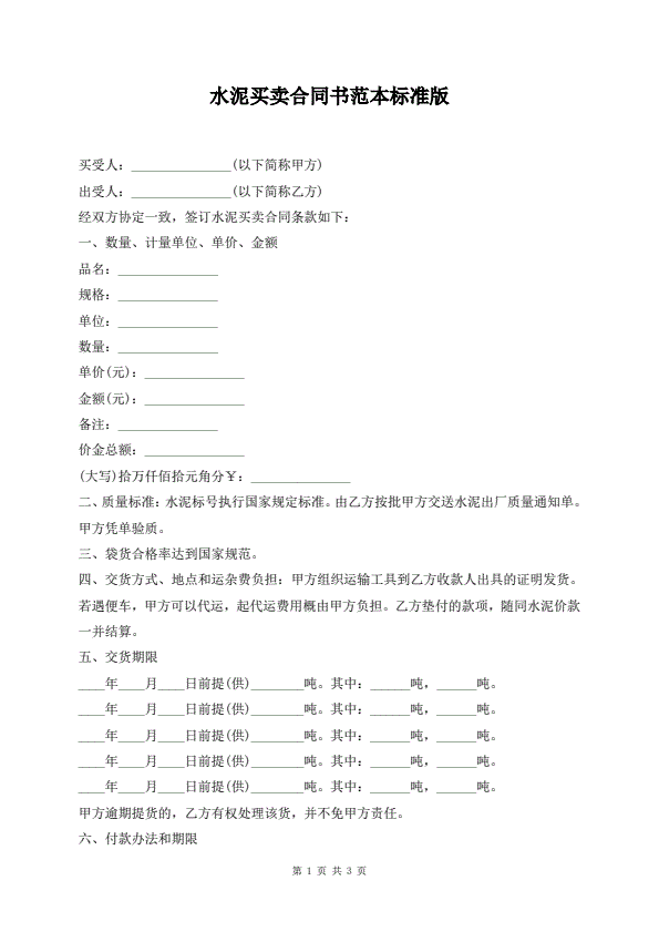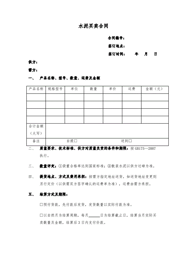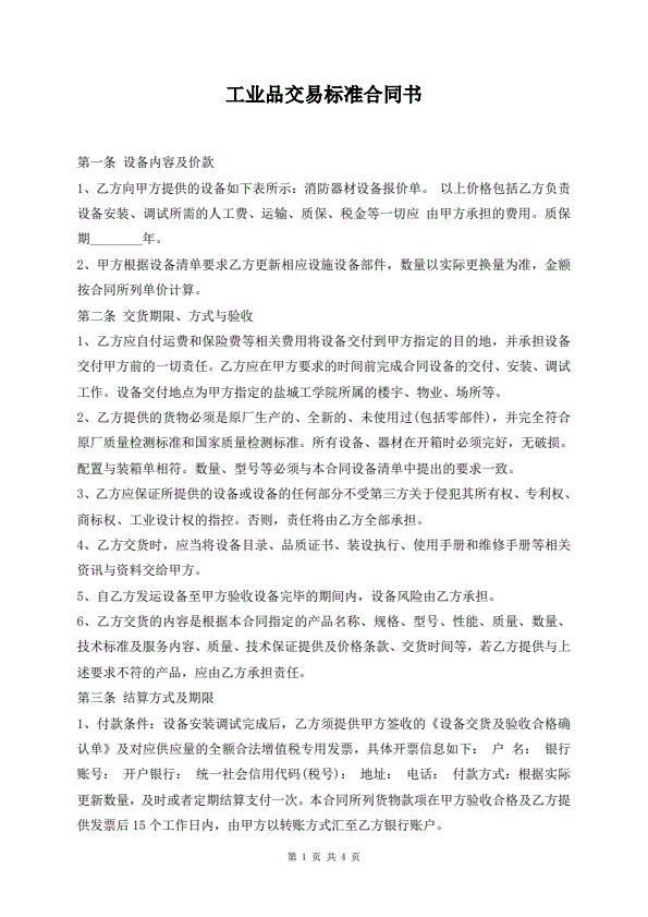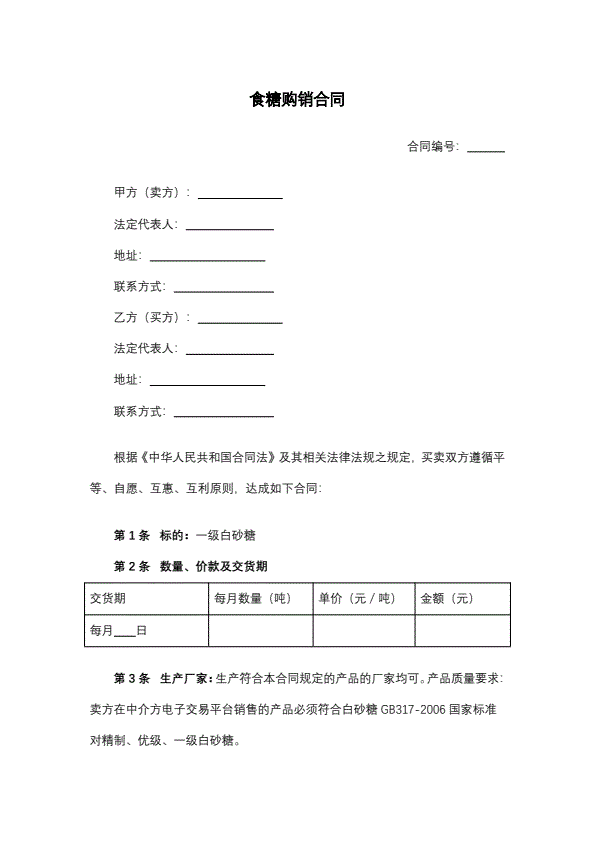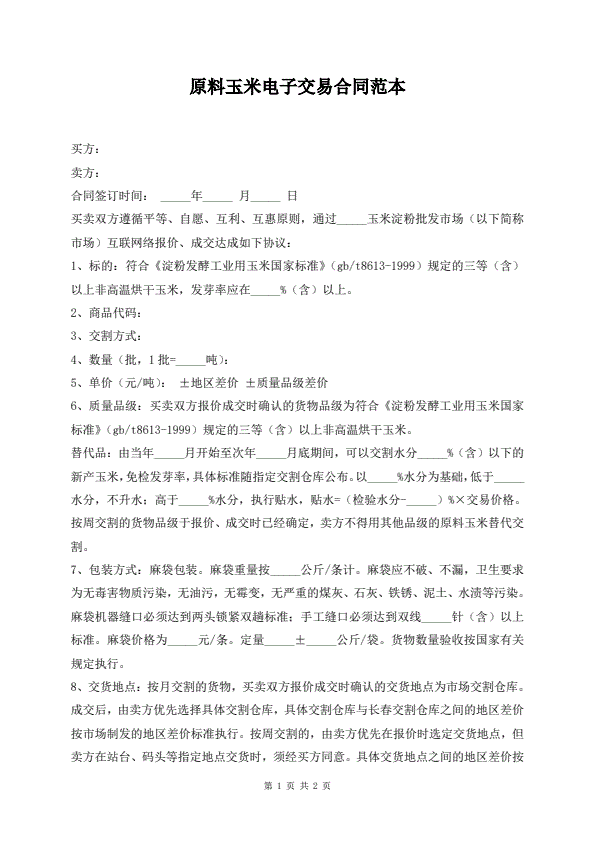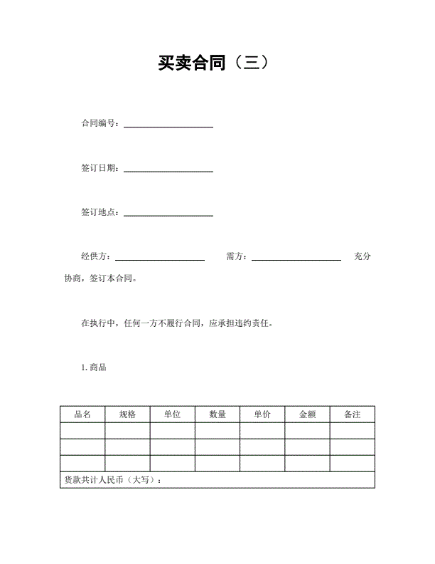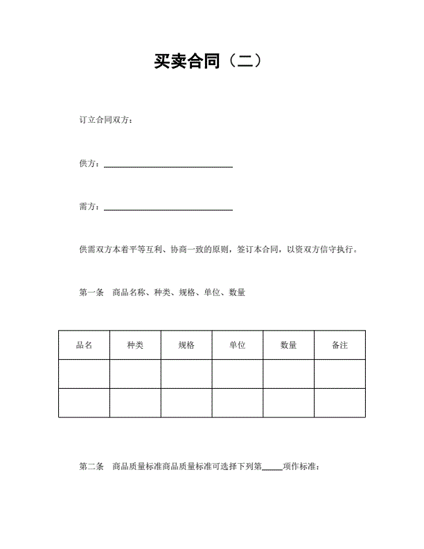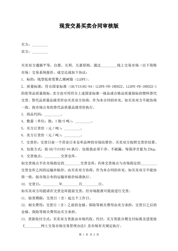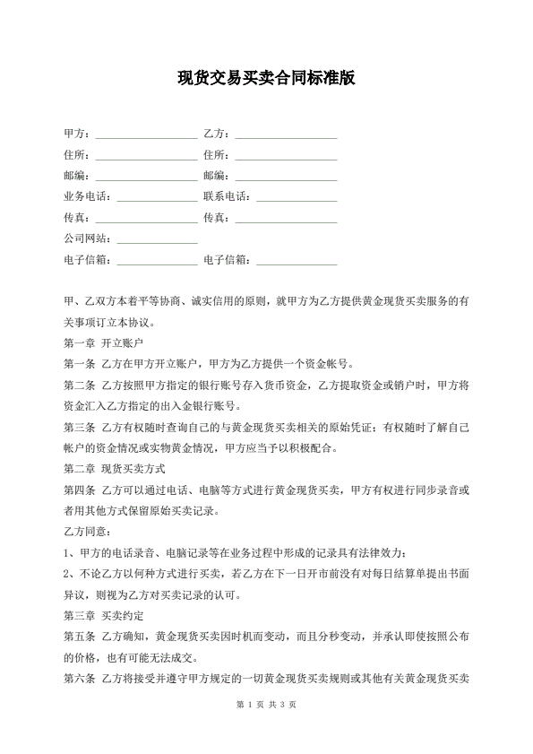 现货交易买卖合同标准版