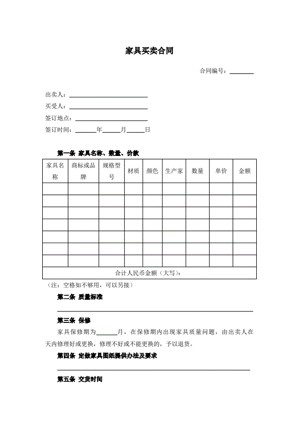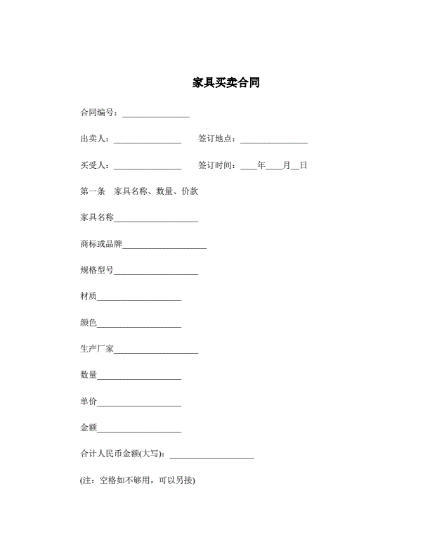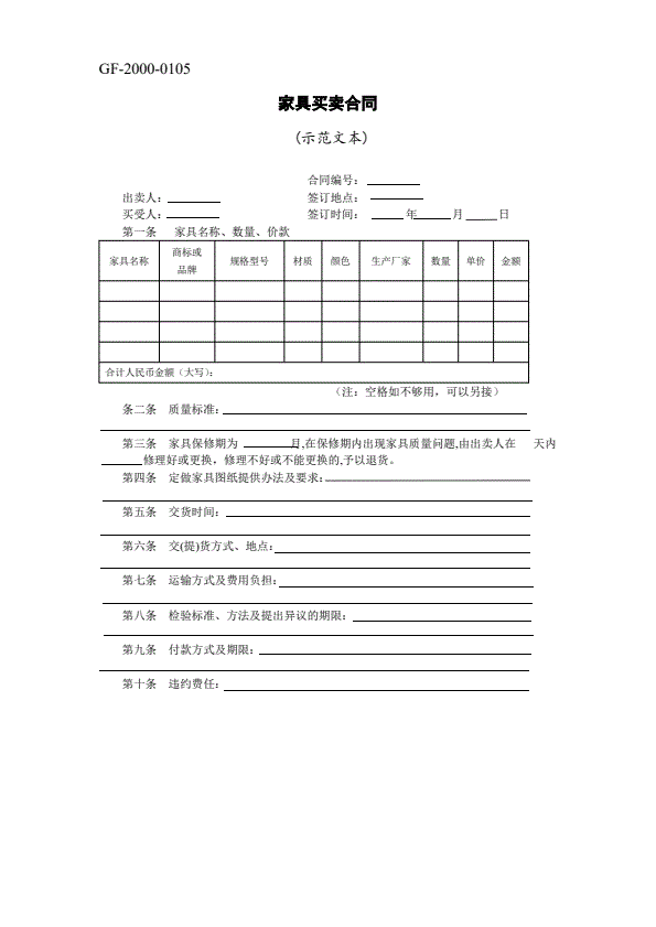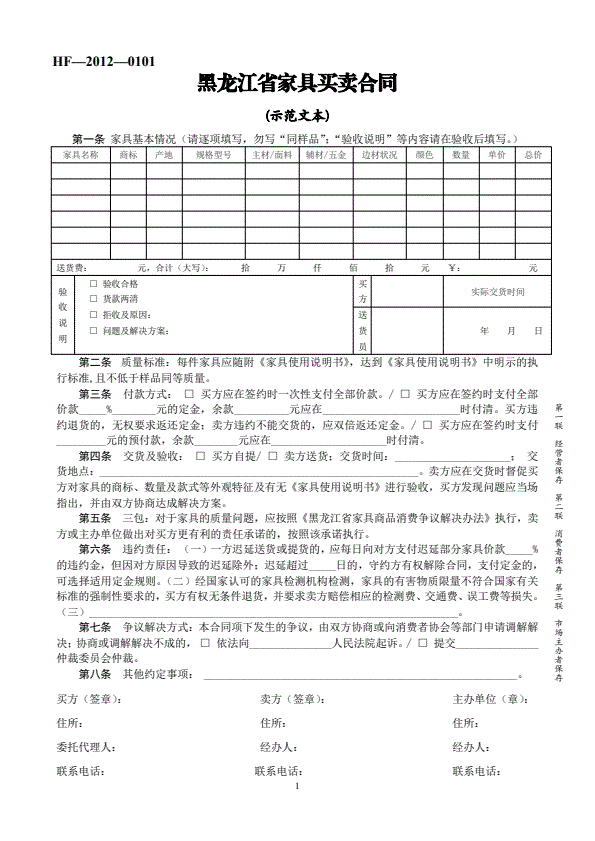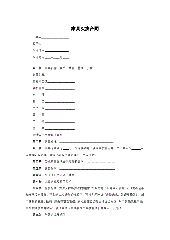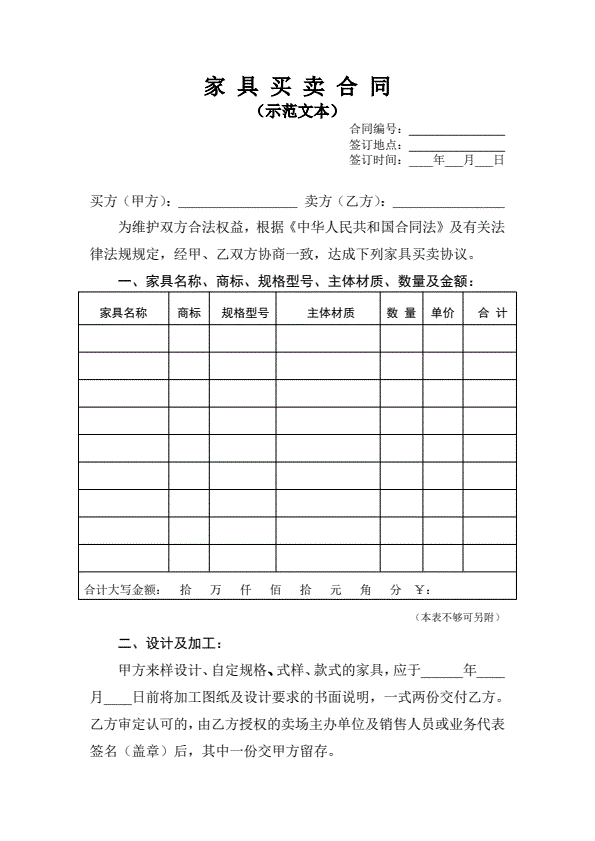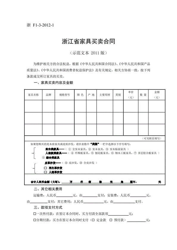 浙江省家具买卖合同