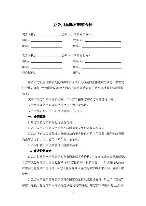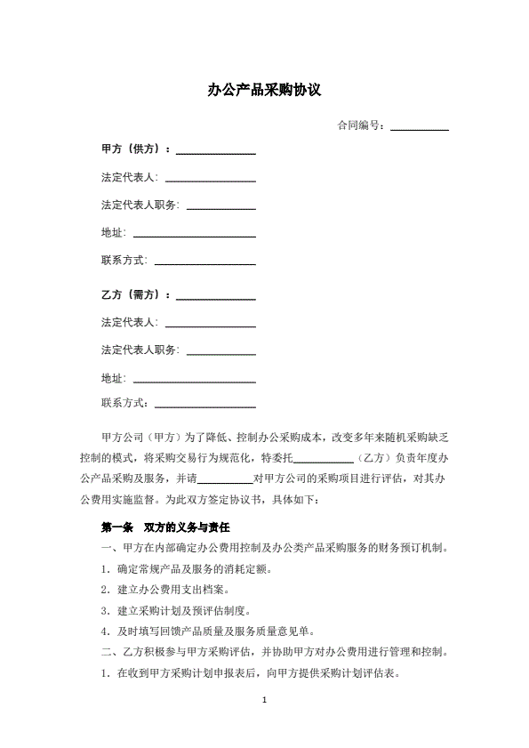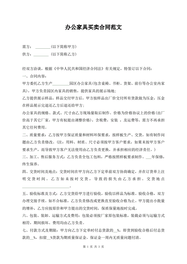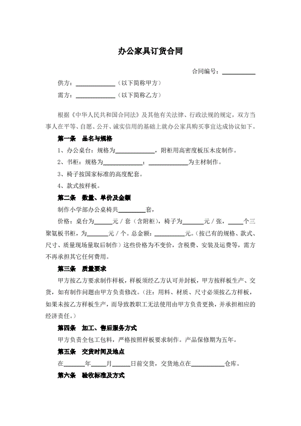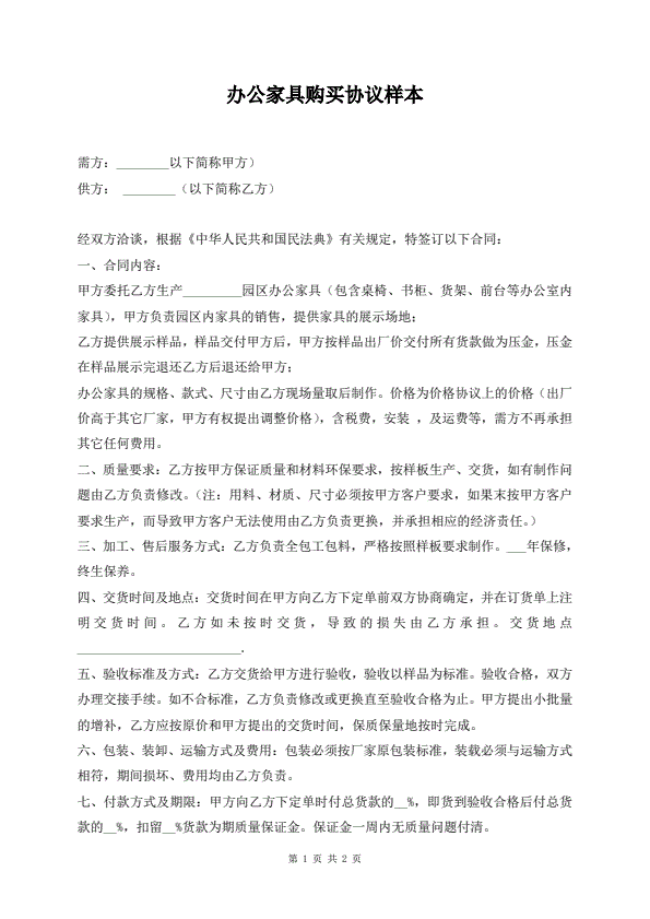 办公家具购买协议样本