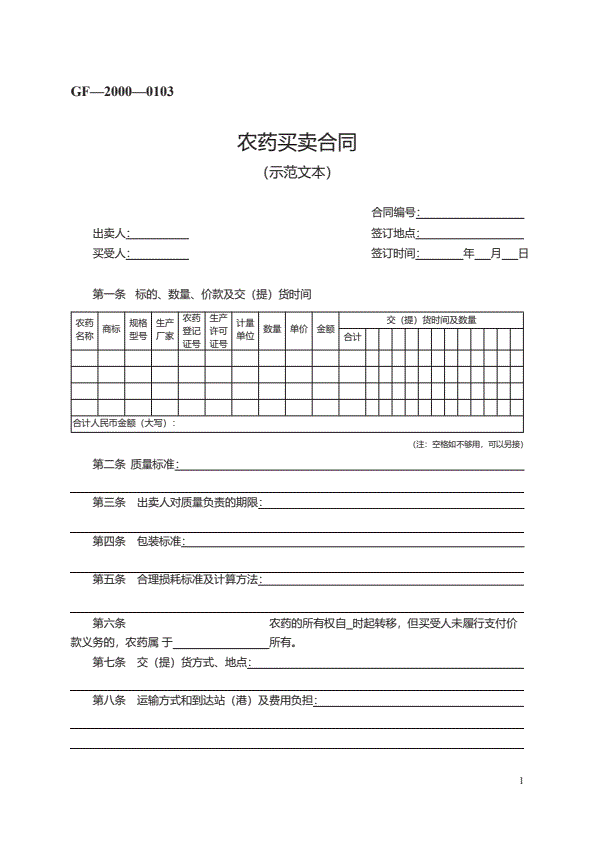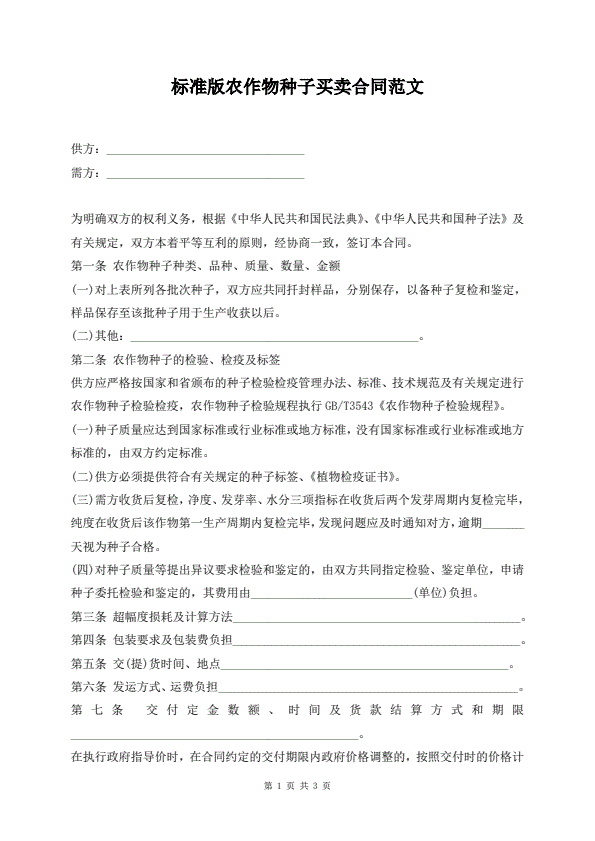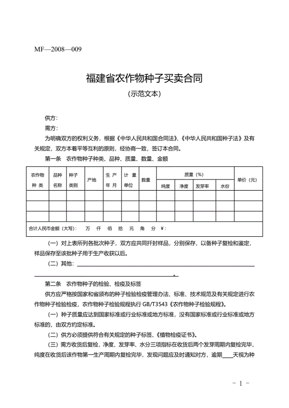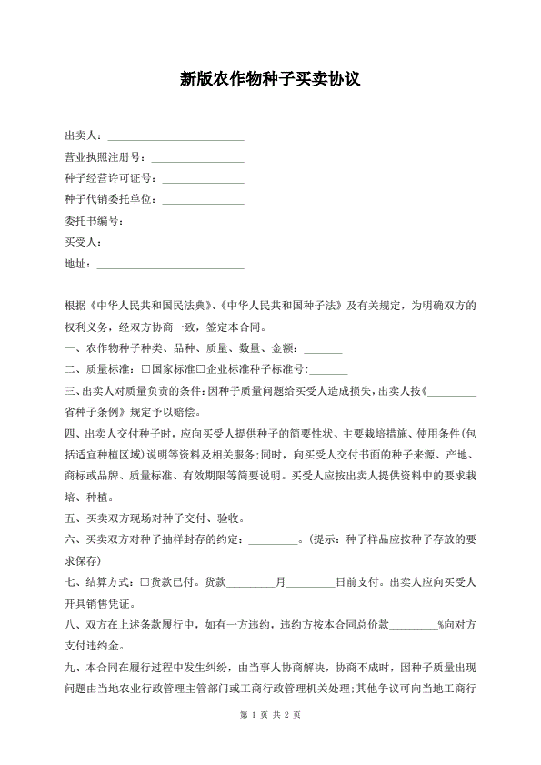 新版农作物种子买卖协议