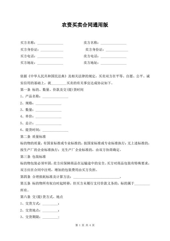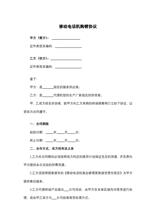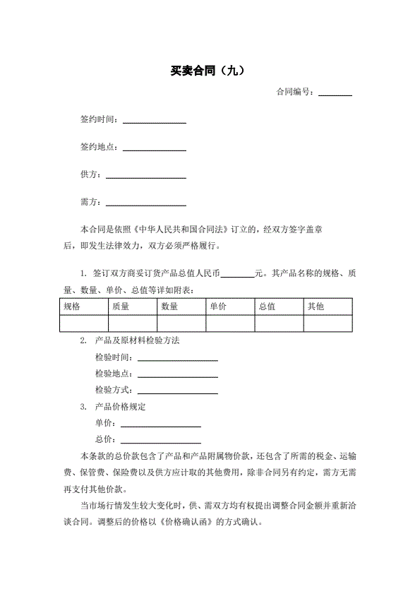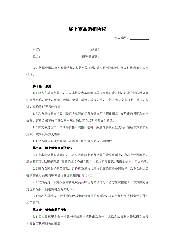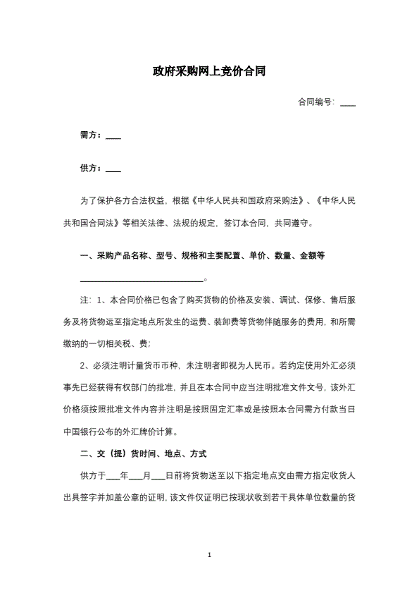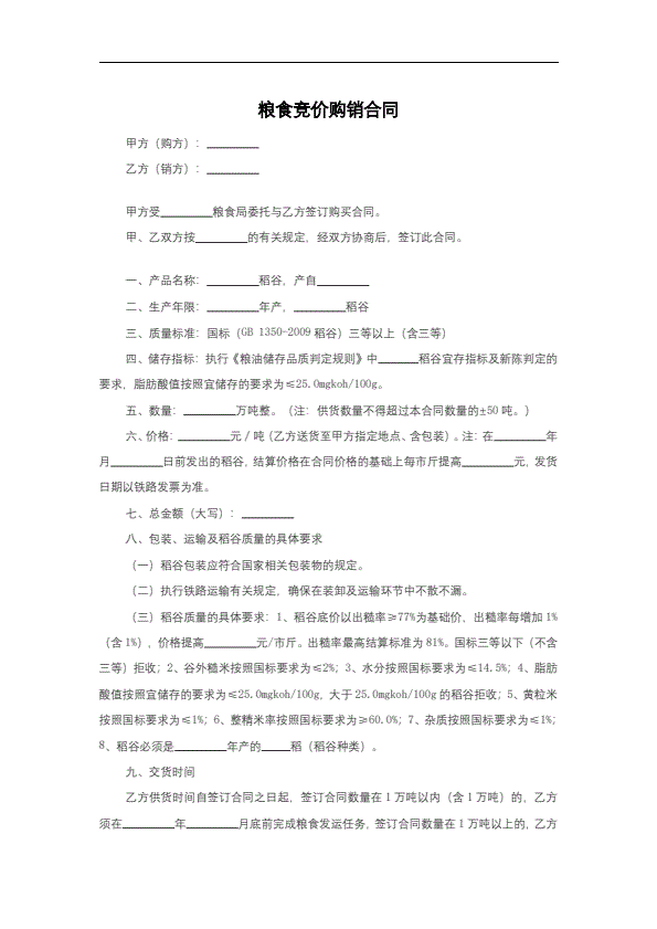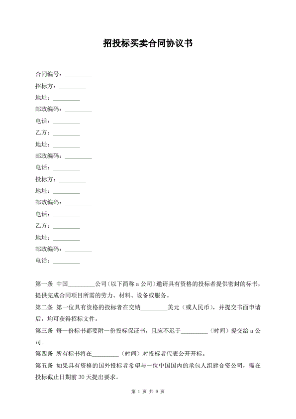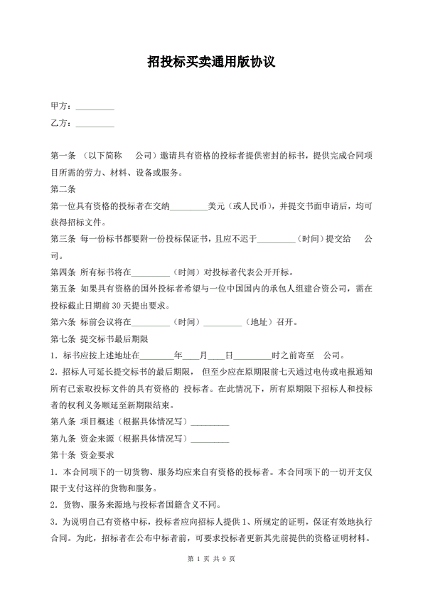 招投标买卖通用版协议