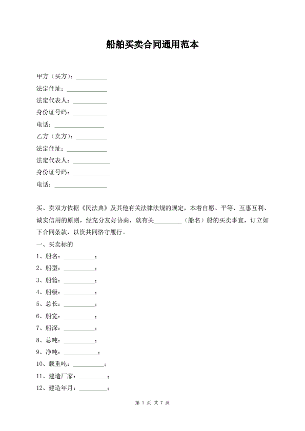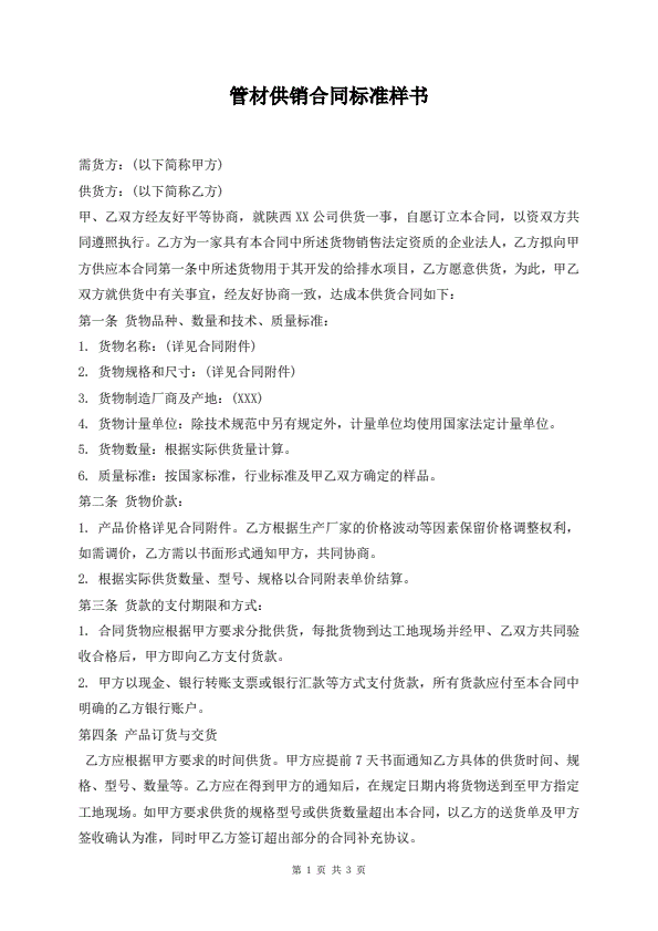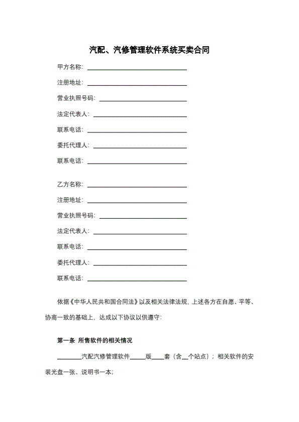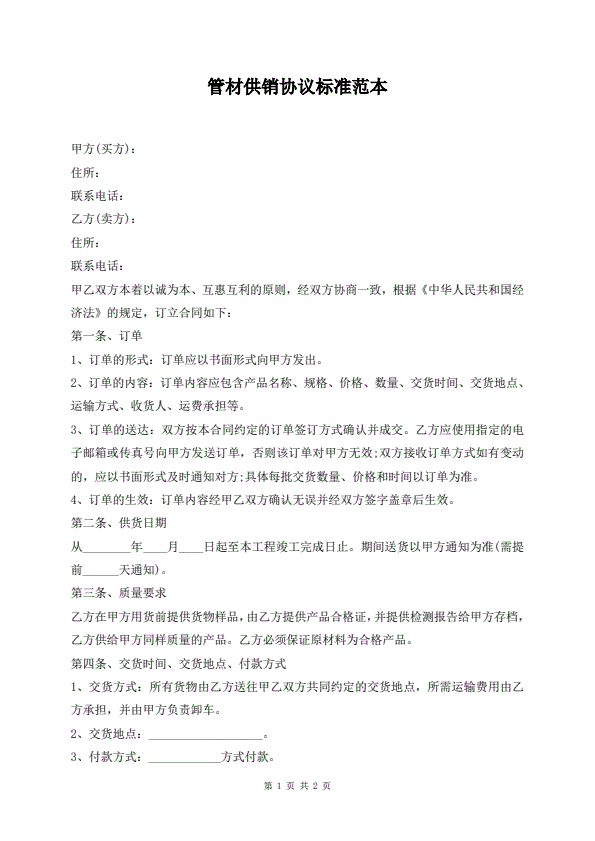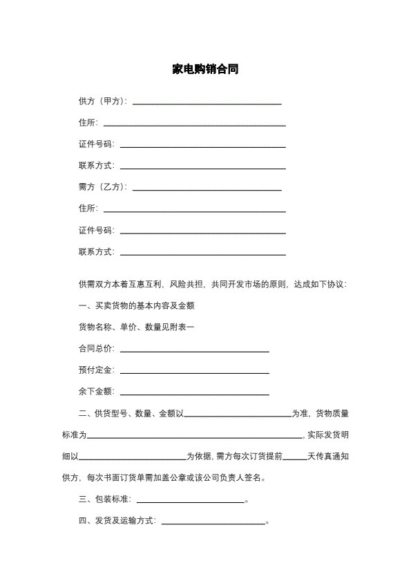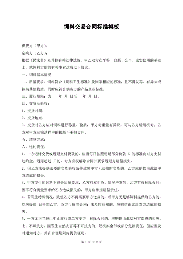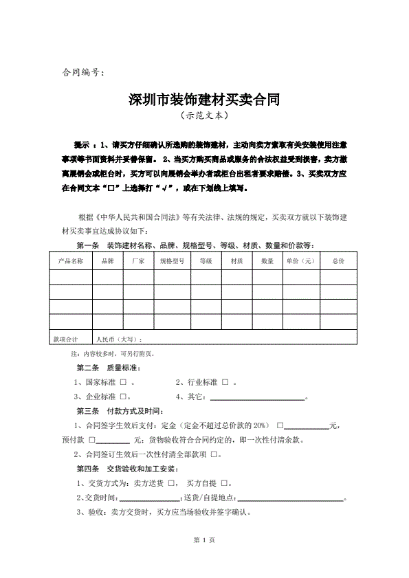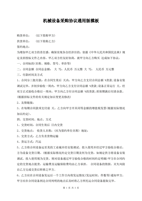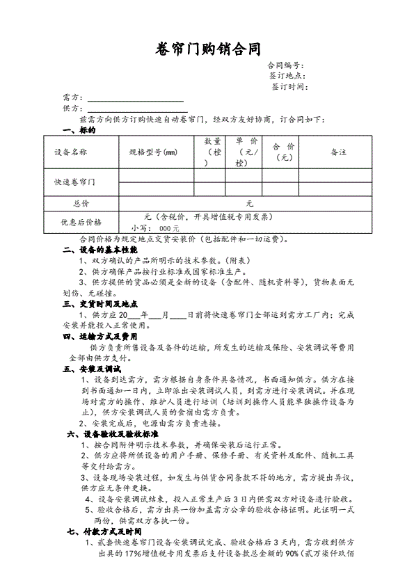 招投标买卖通用版协议