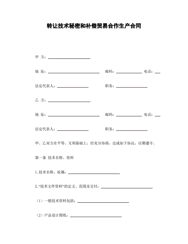 转让技术秘密和补偿贸易合作生产合同