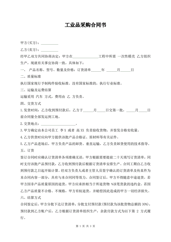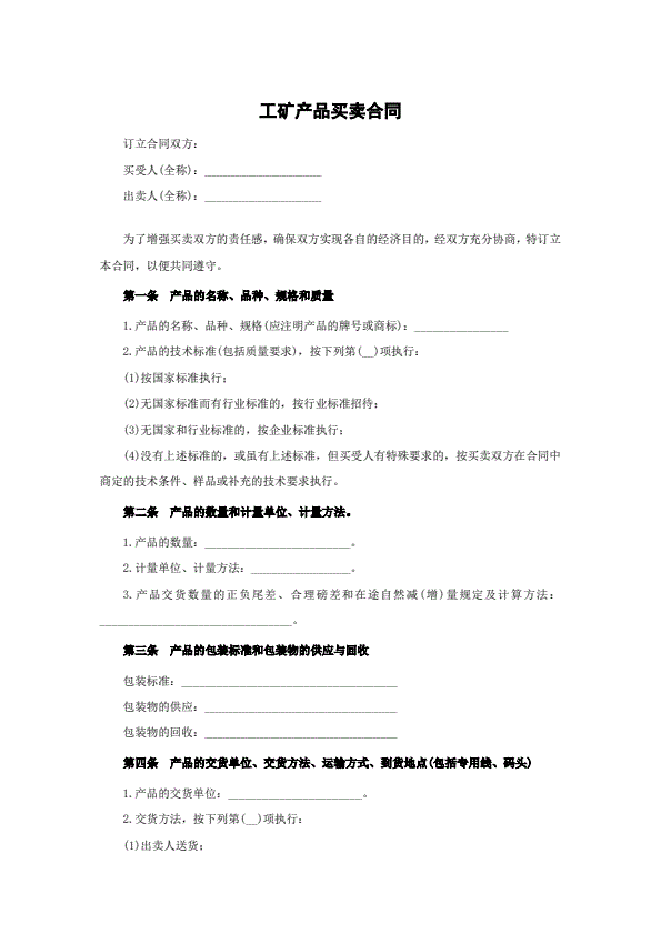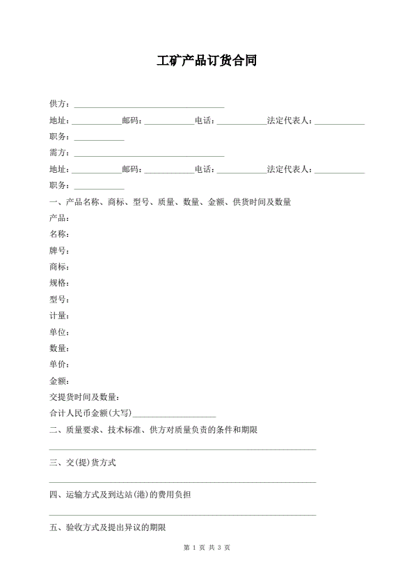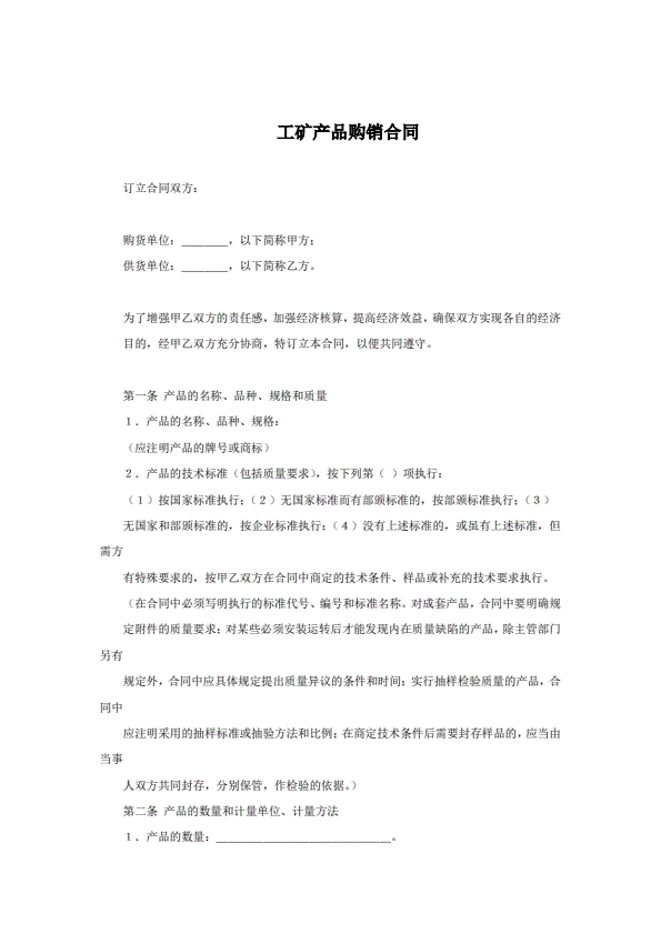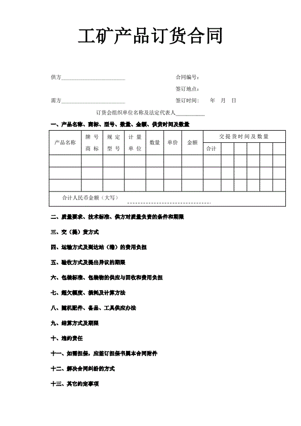 锰产品订货合同