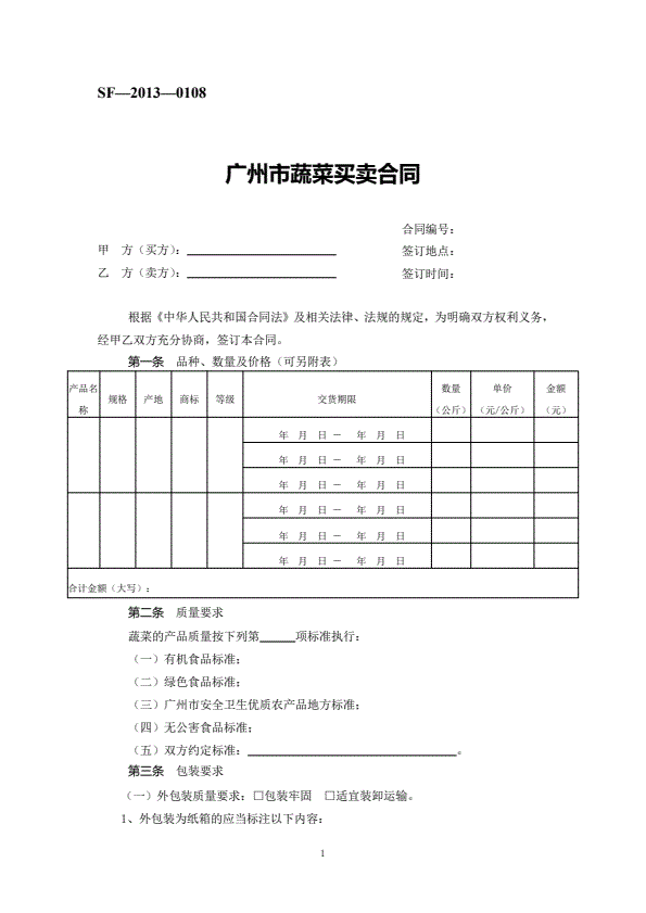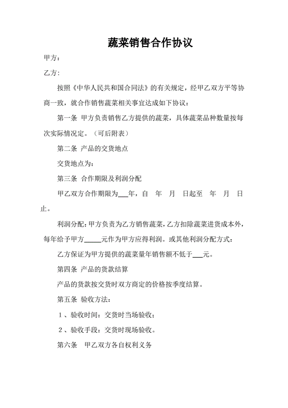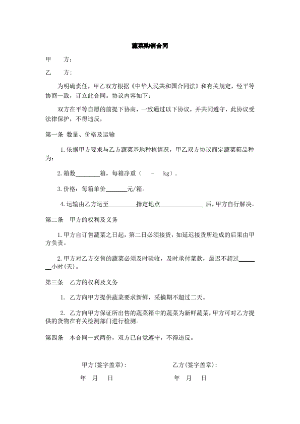 山西省蔬菜买卖合同