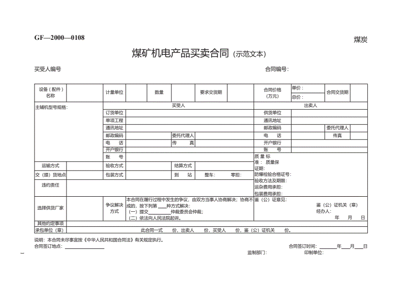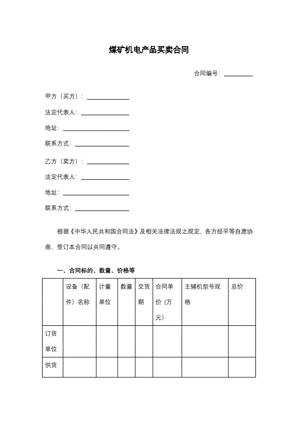 煤矿机电产品买卖合同