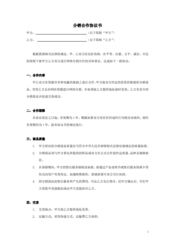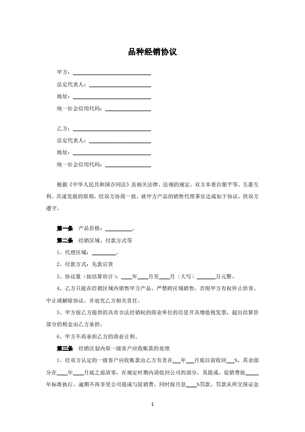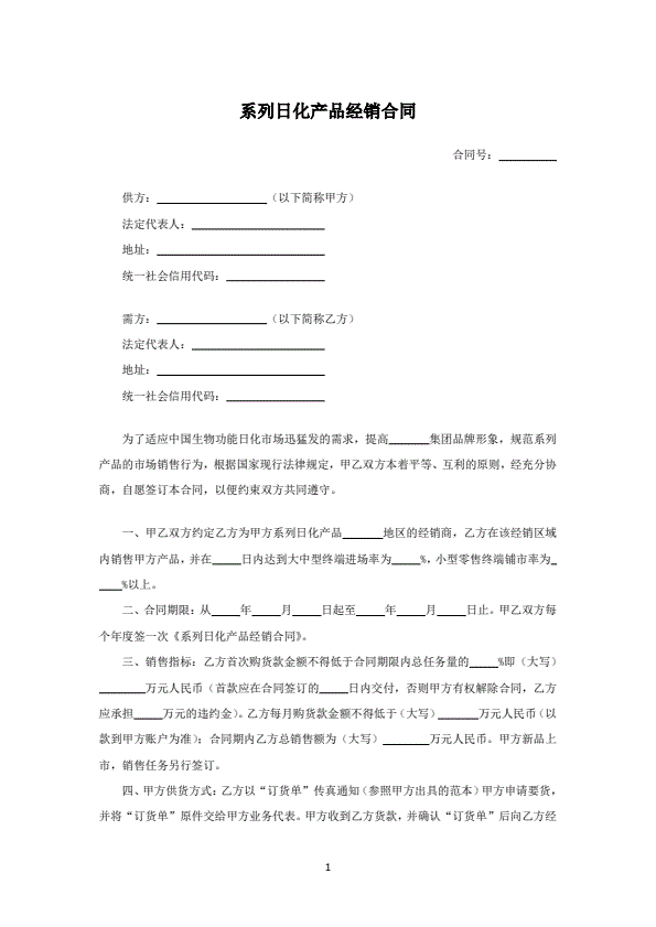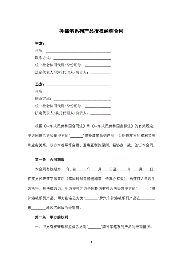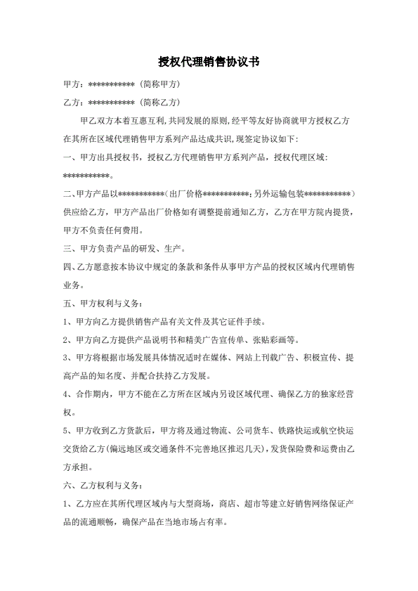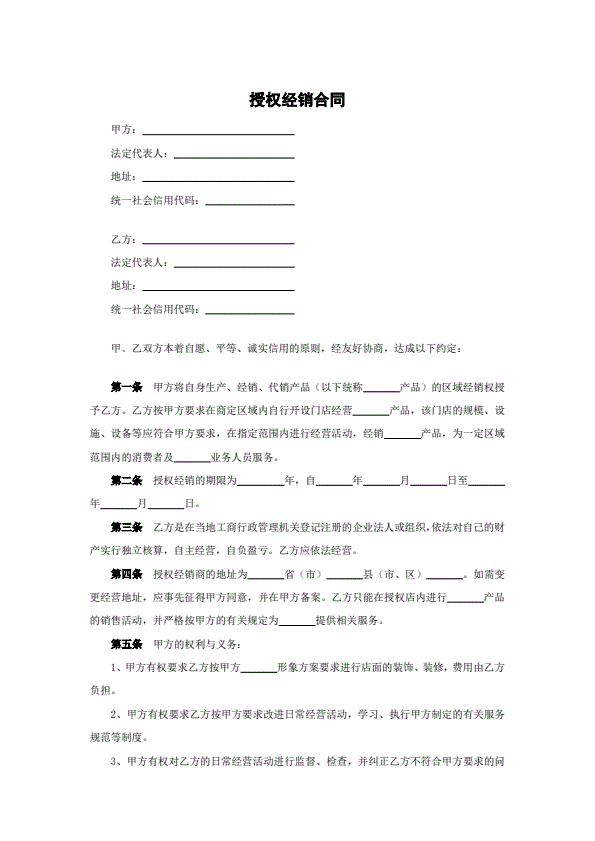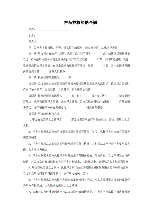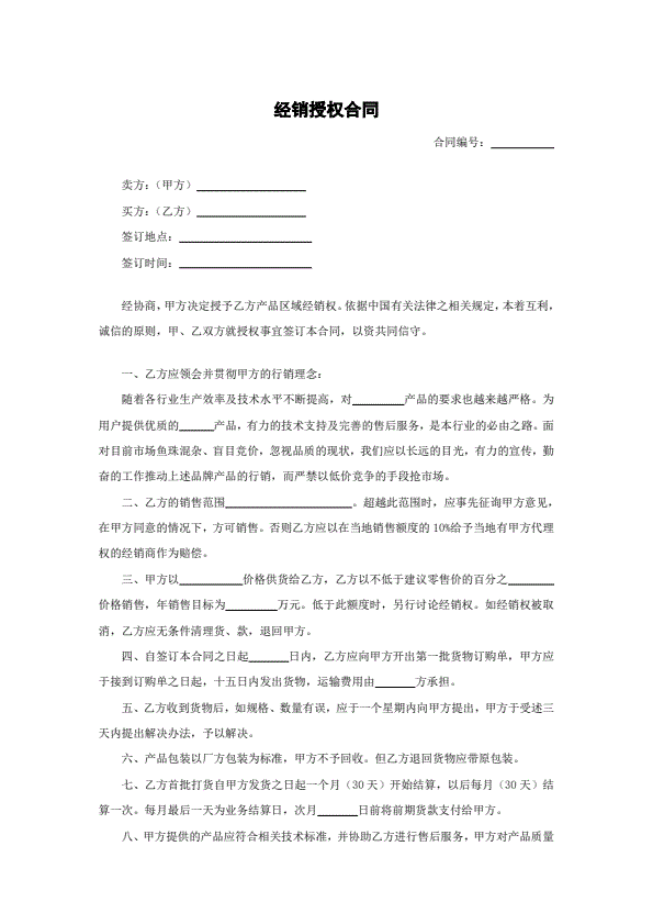 产品授权经销合同