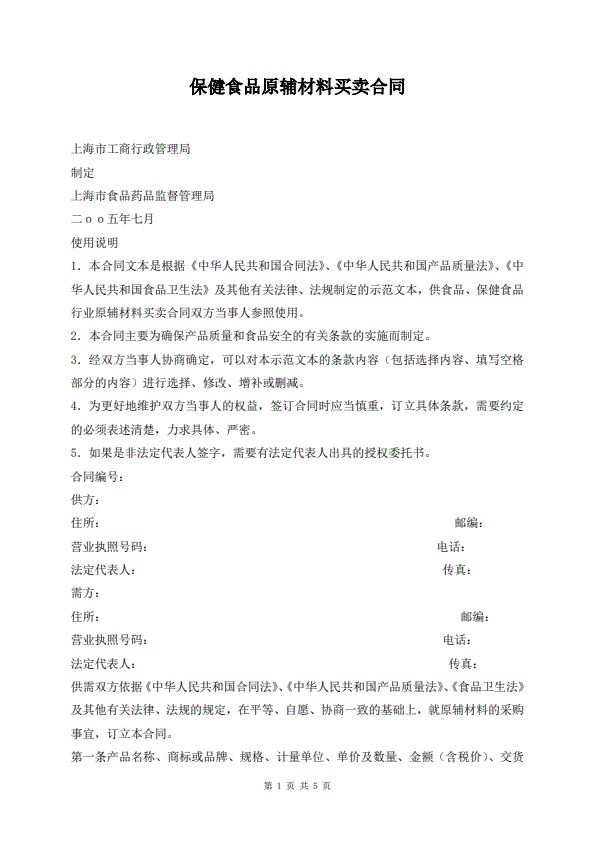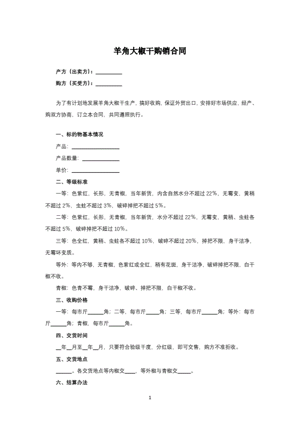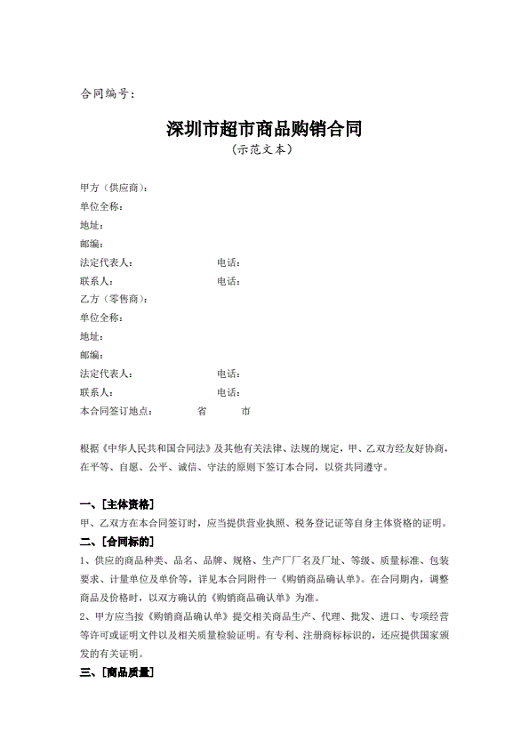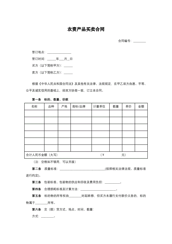 内蒙古自治区农副产品买卖合同(示范文本)