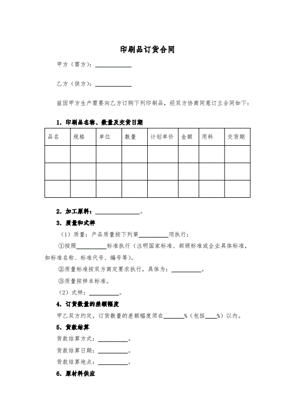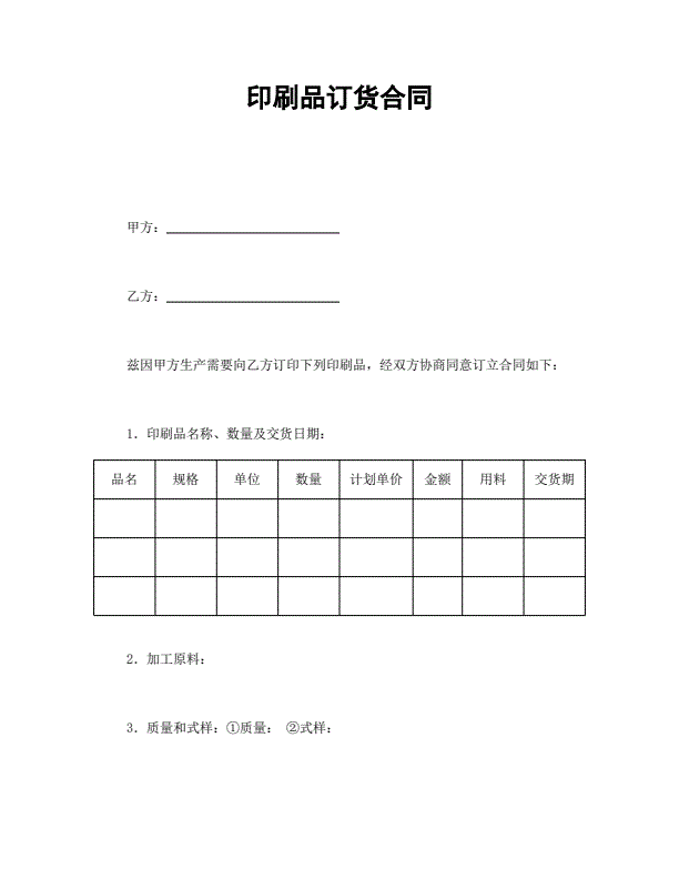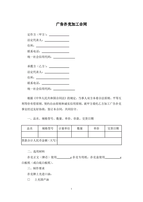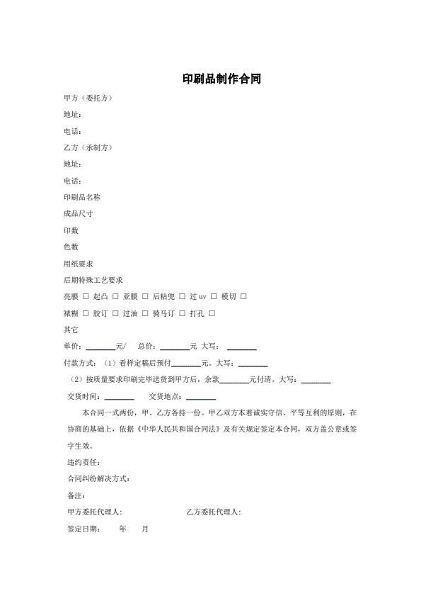 印刷品加工承揽合同