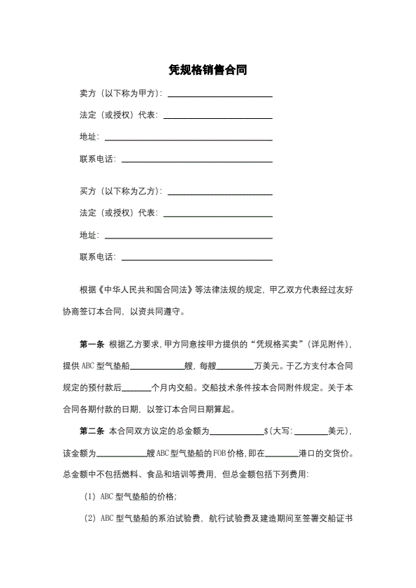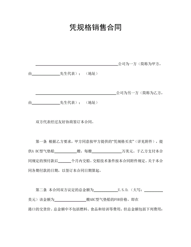 凭规格销售合同