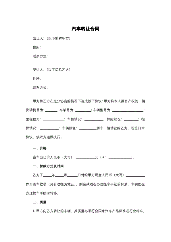 汽车转让合同