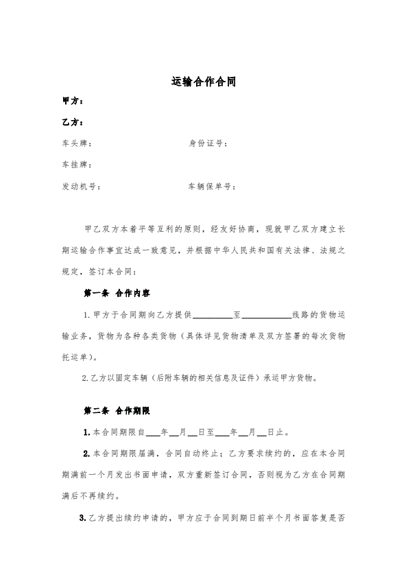 运输合作合同