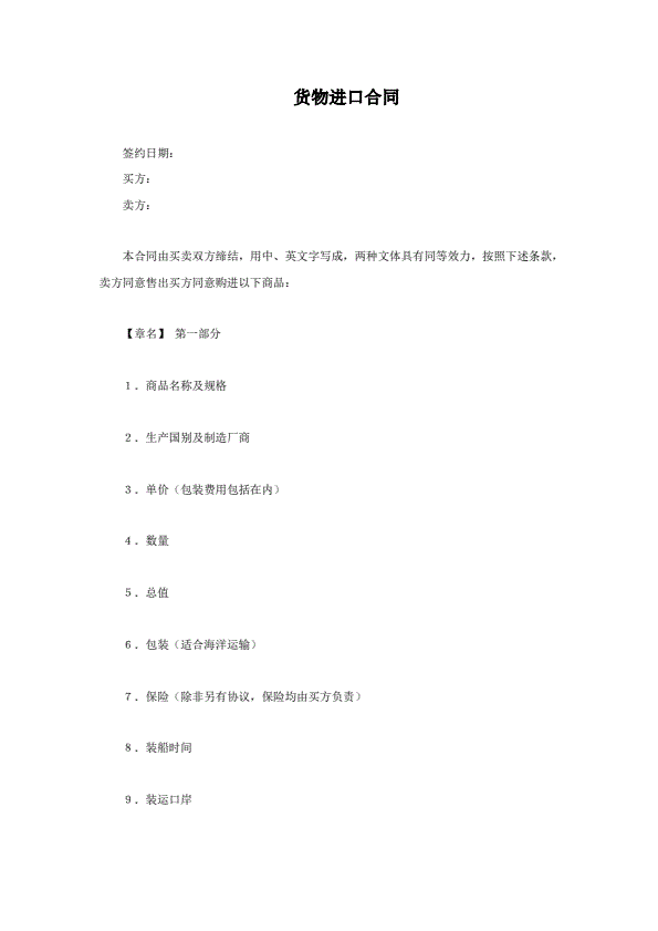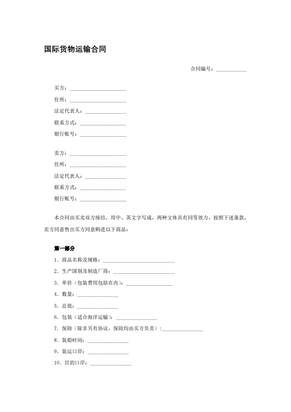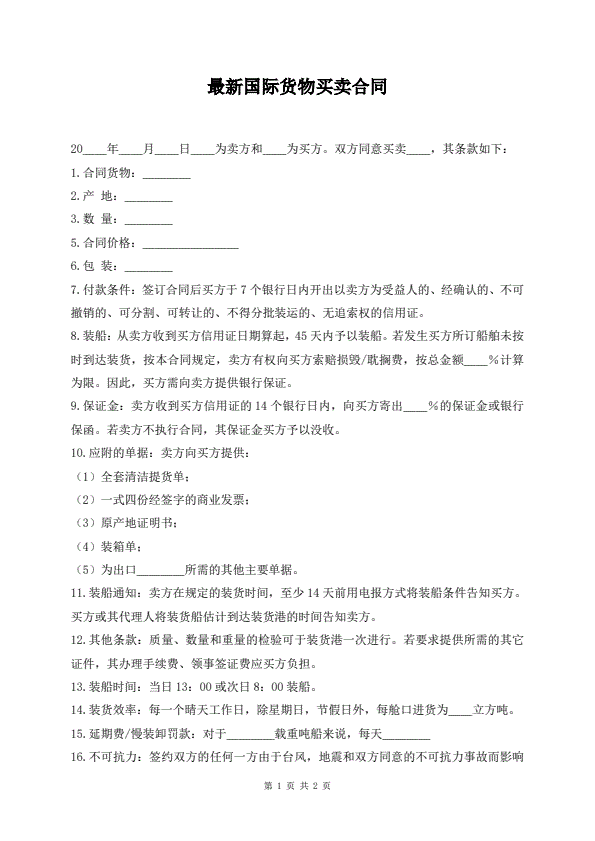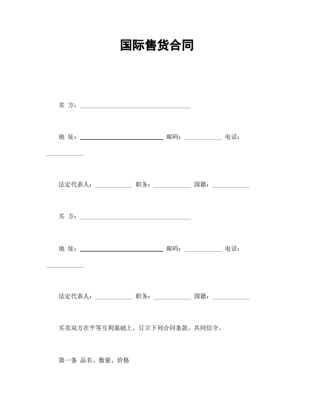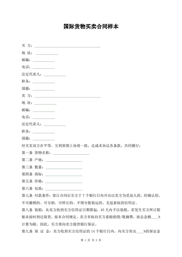 国际货物买卖合同样本