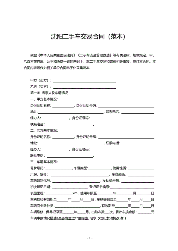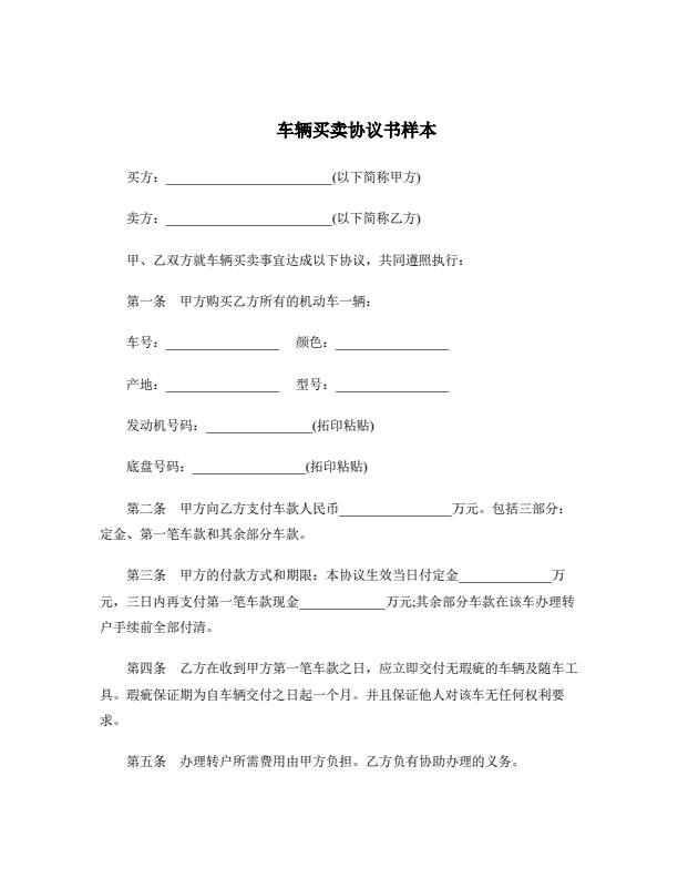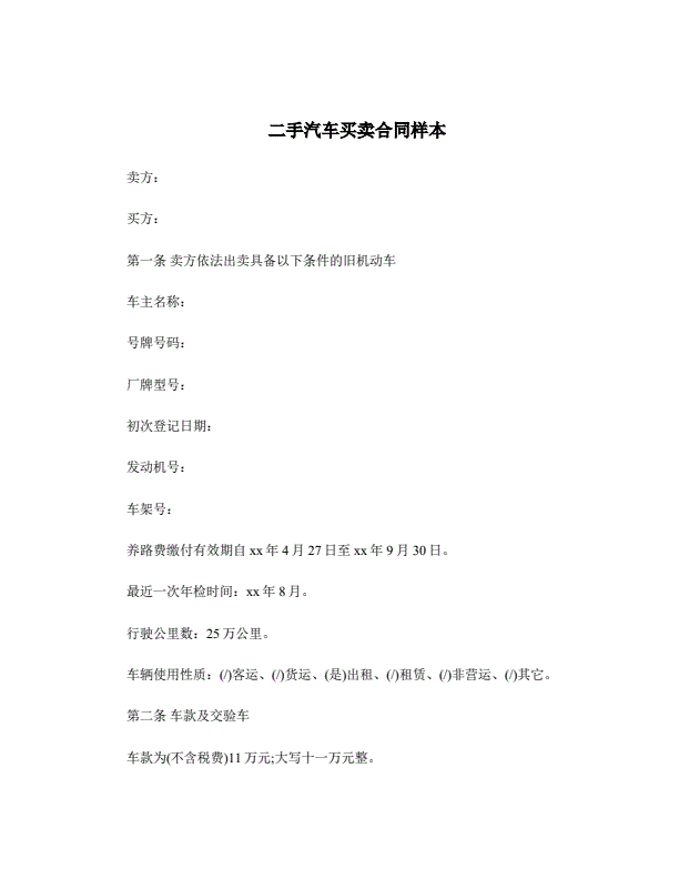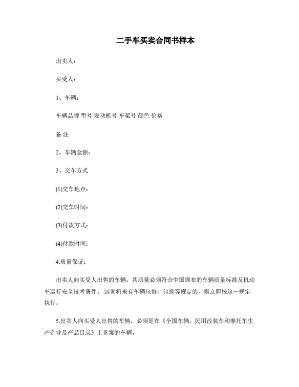二手汽车买卖合同样本_