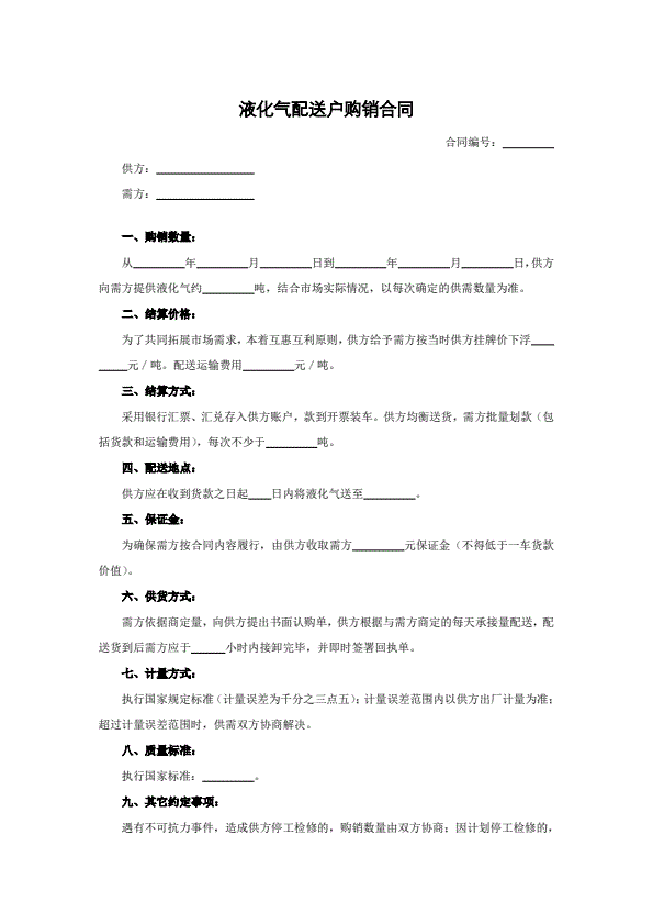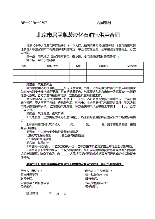 北京市居民瓶装液化石油气供用合同