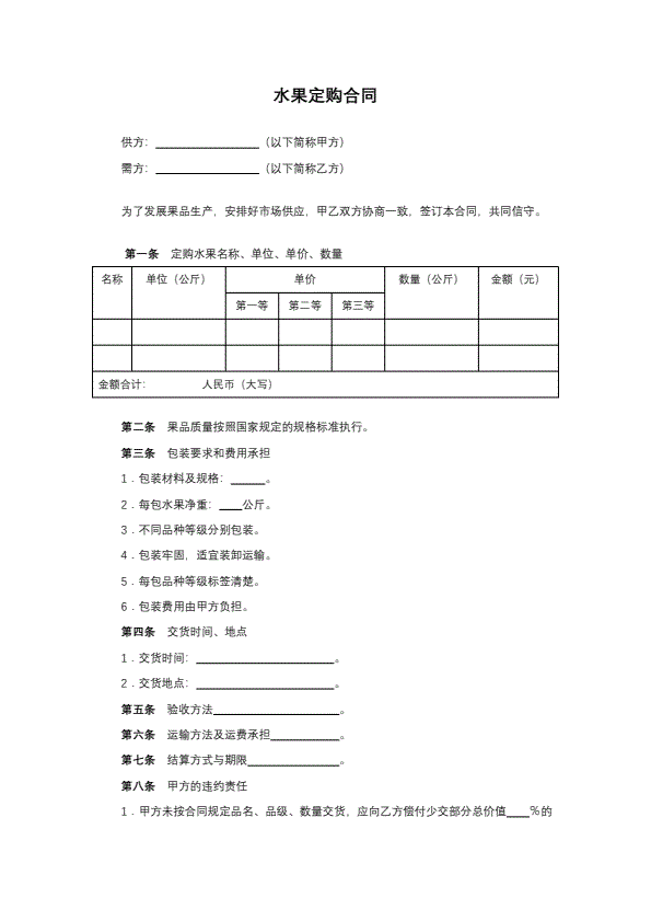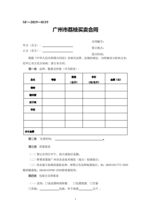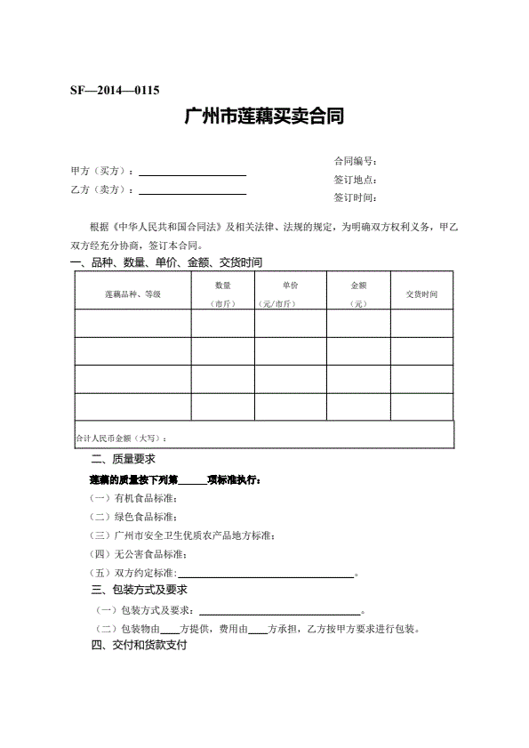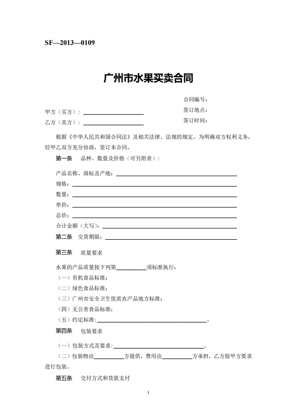 修订山西省瓜果买卖合同JF-06
