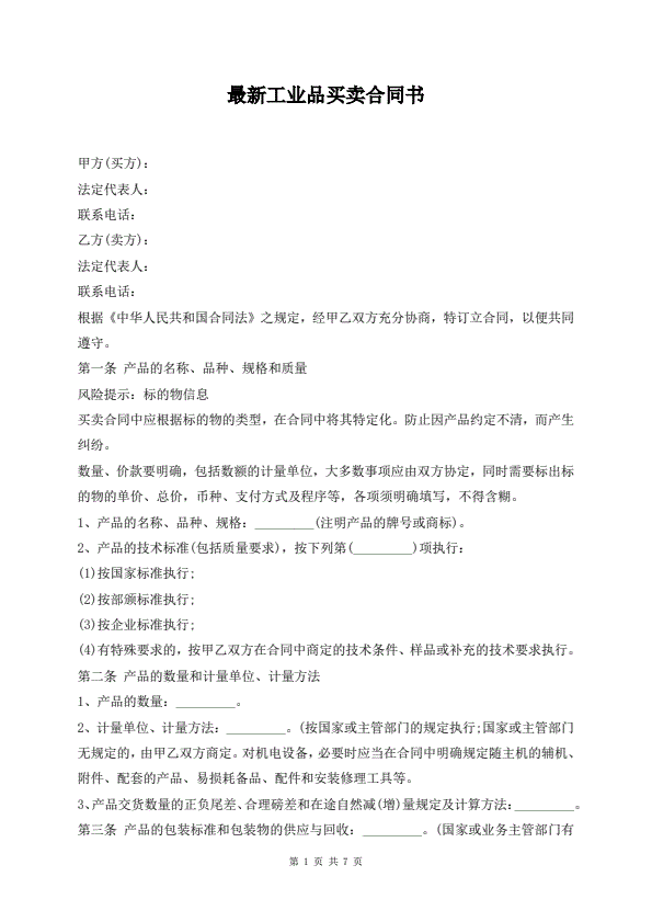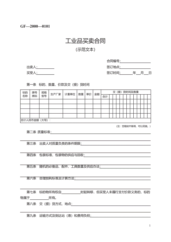 工业品买卖合同 GF—2000—0101