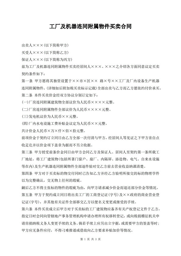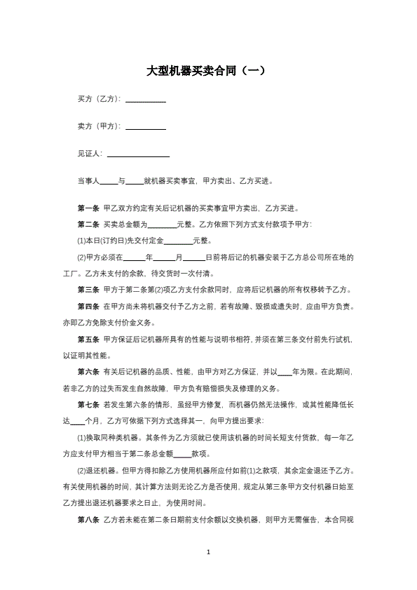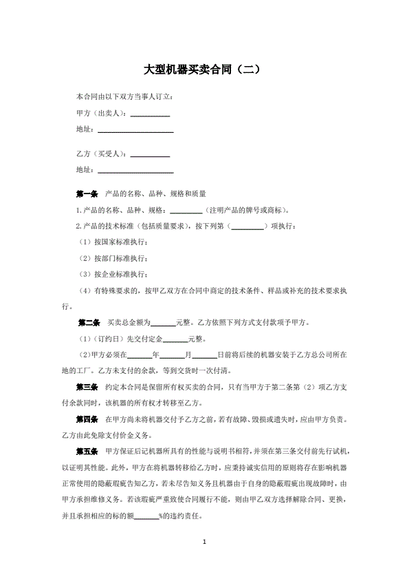 大型机器买卖合同