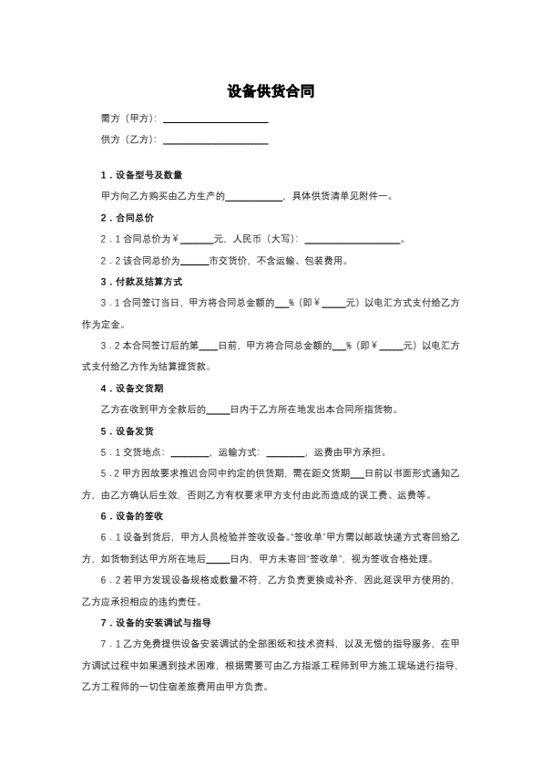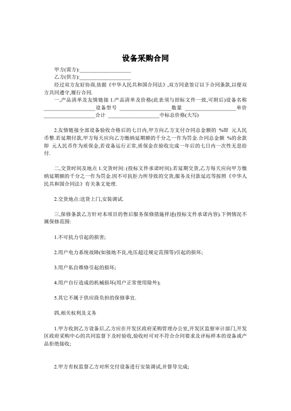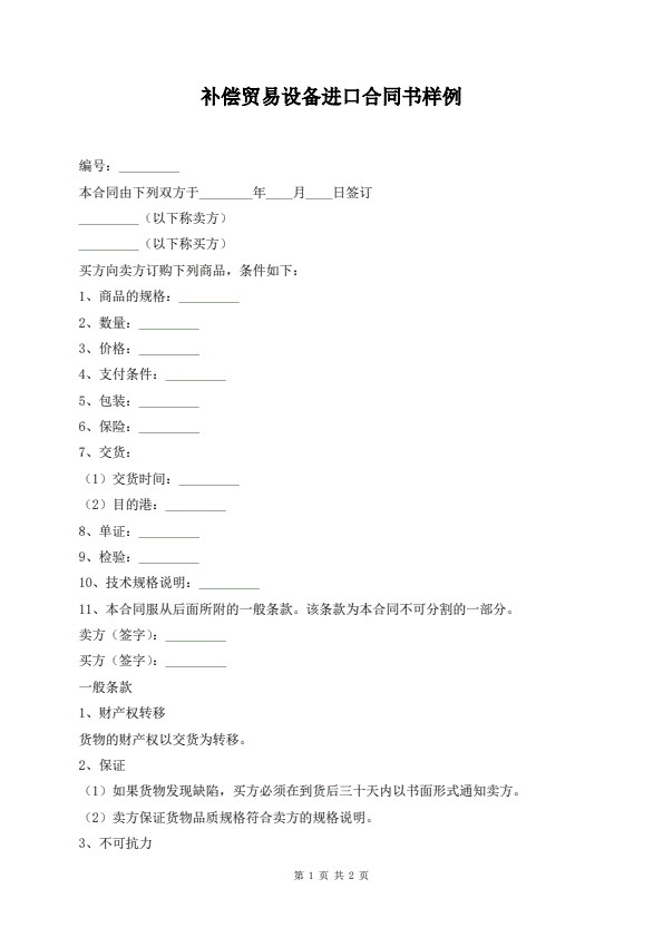 补偿贸易设备进口合同书样例