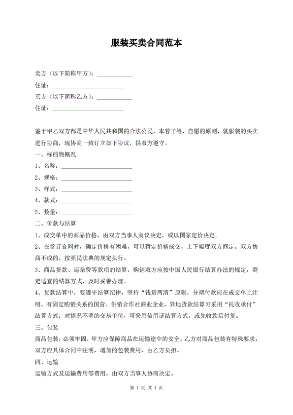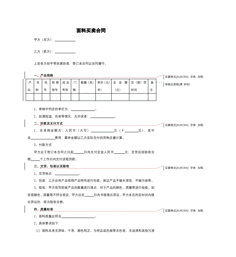 布匹买卖合同