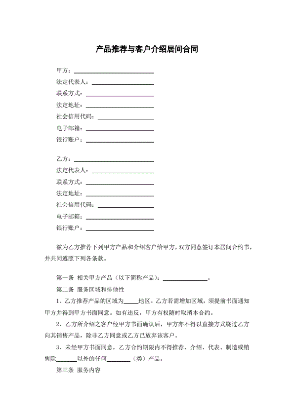 产品推荐与客户介绍居间合同