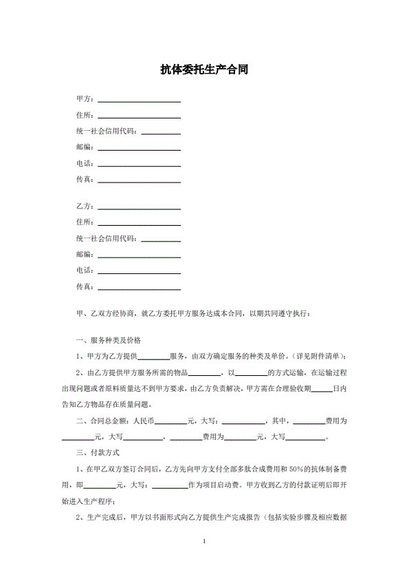 抗体委托生产合同