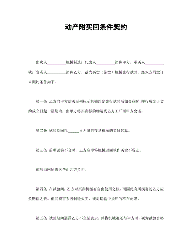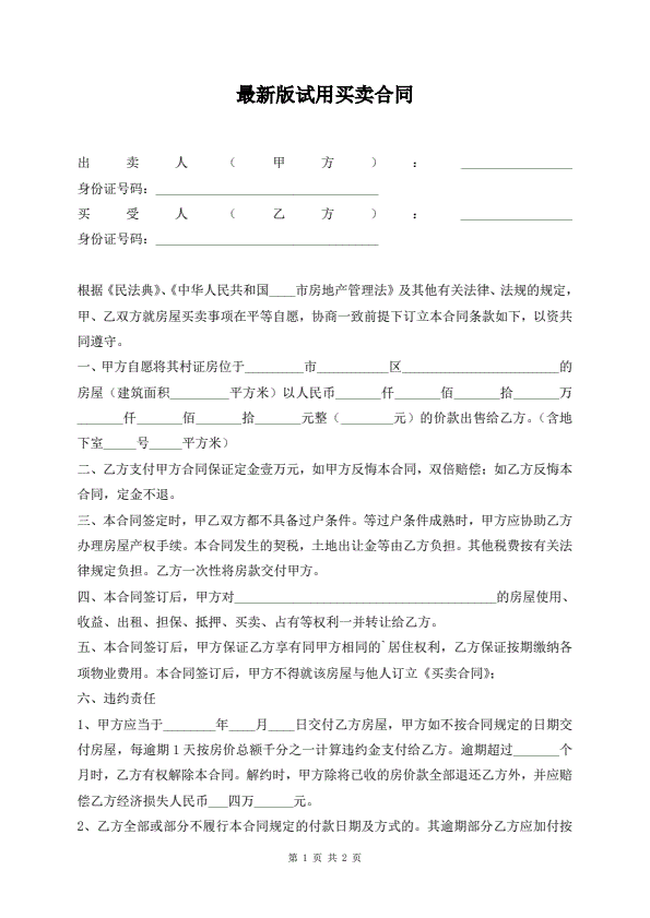 最新版试用买卖合同