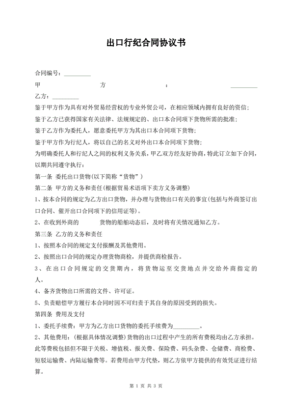 出口行纪合同协议书