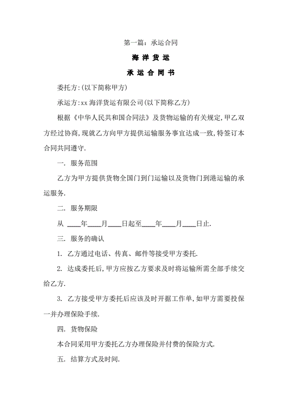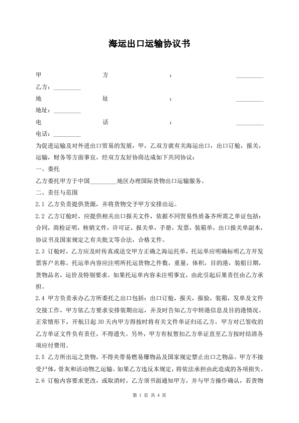 海运出口运输协议书
