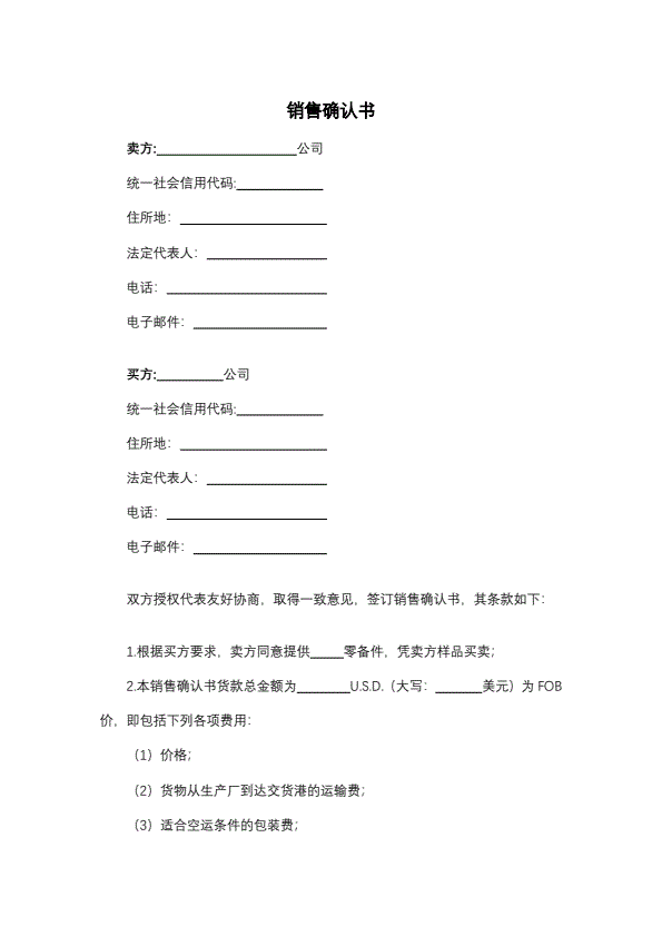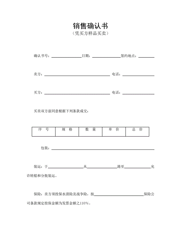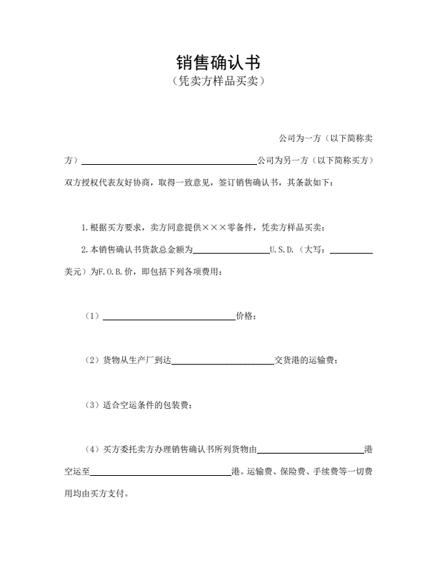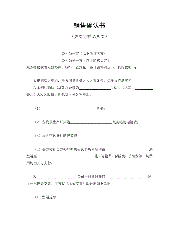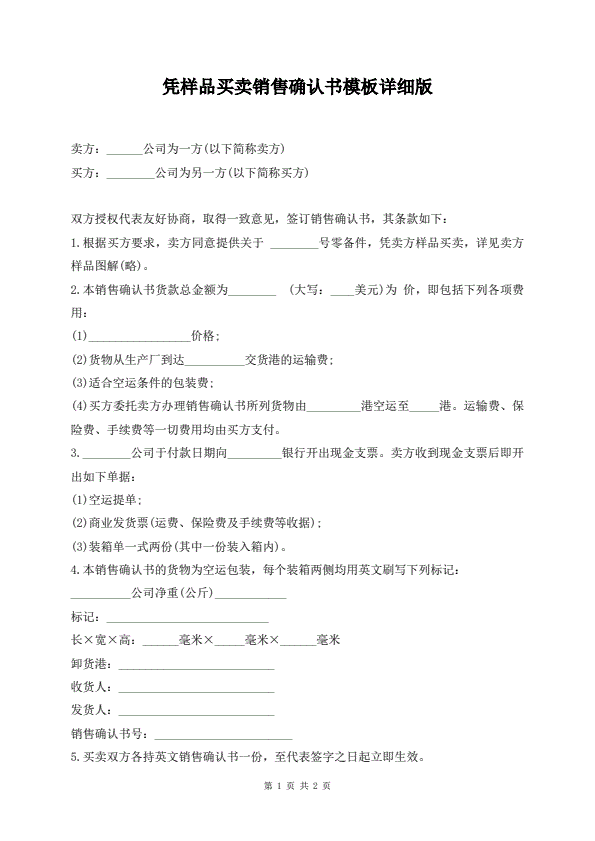凭样品买卖销售确认书模板详细版