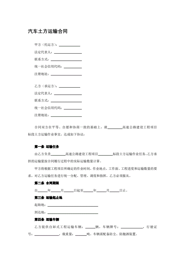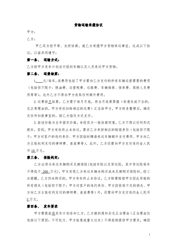 运输合同(与车队签订)