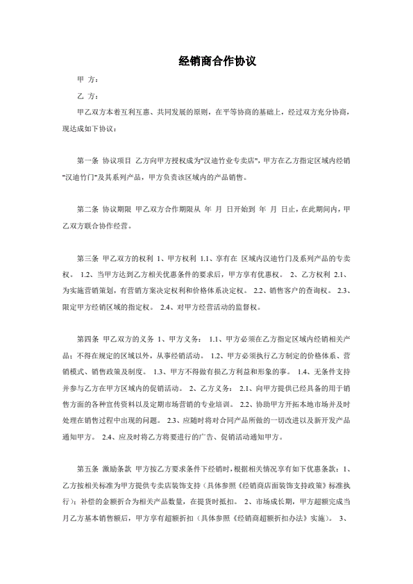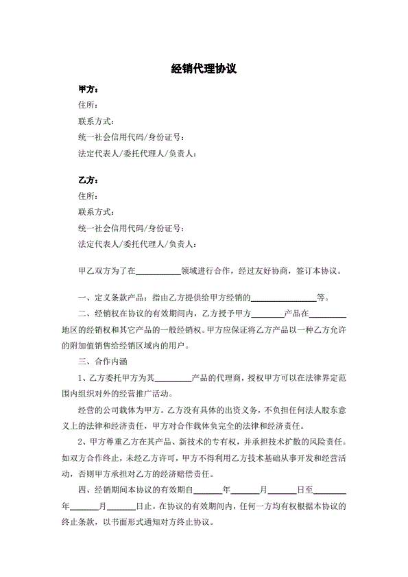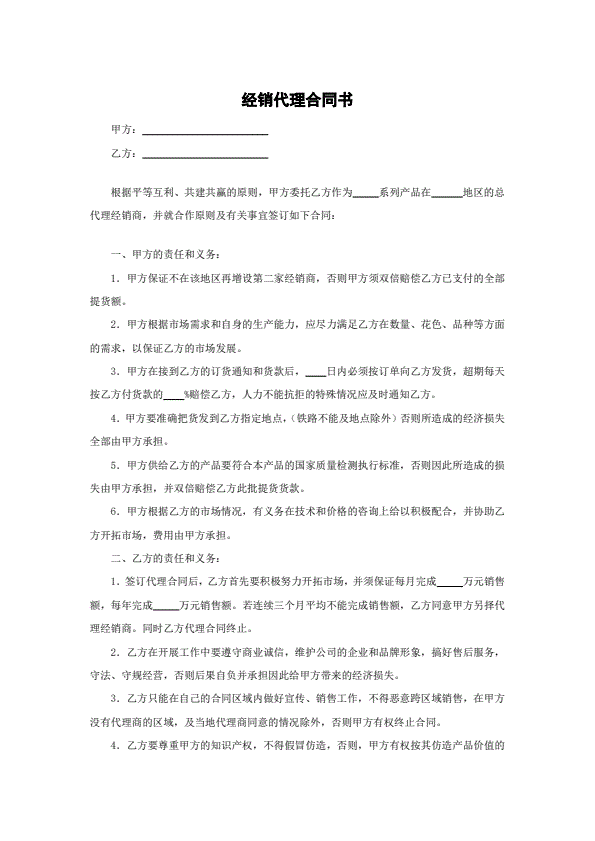 经销代理合同书