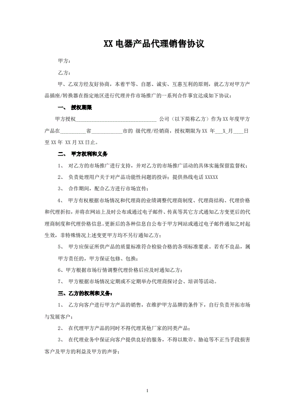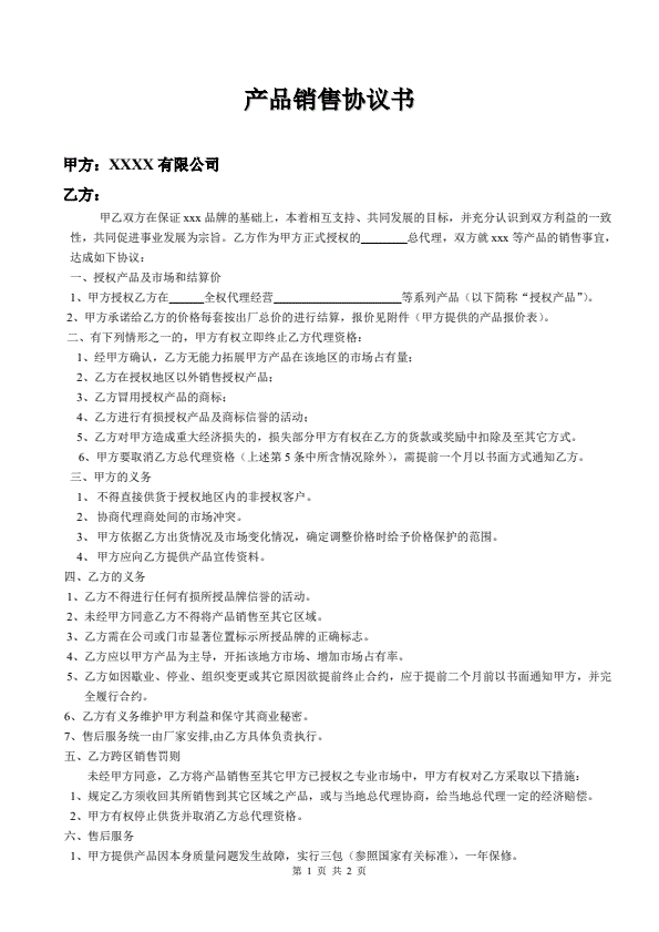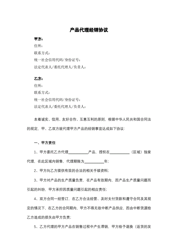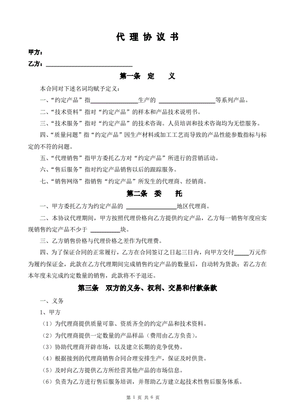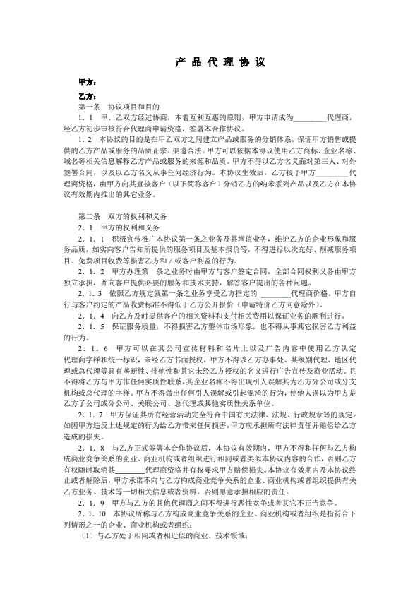 产品代理协议书范本