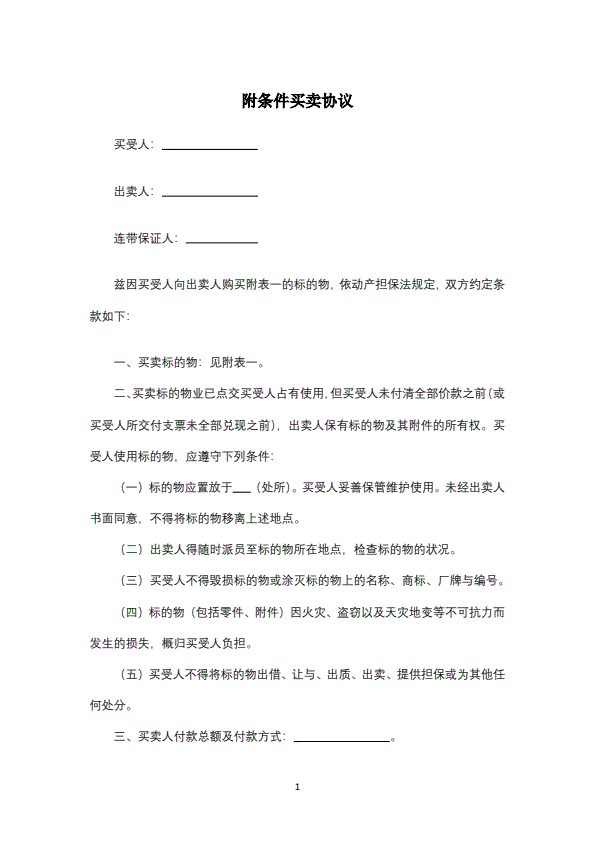 附条件买卖协议