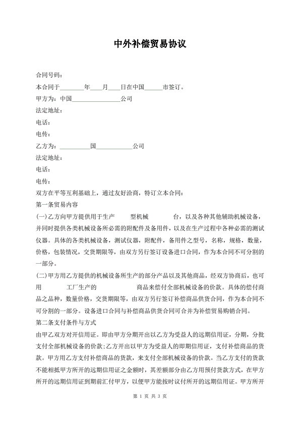 中外补偿贸易协议
