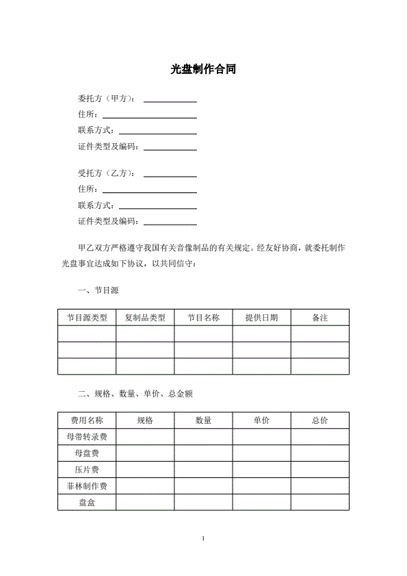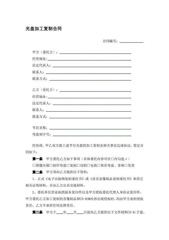 光盘加工复制合同