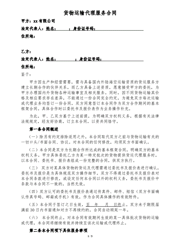 货物运输代理服务合同
