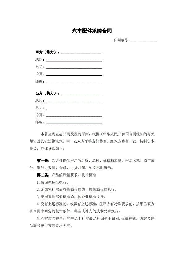 汽车电器设备买卖合同