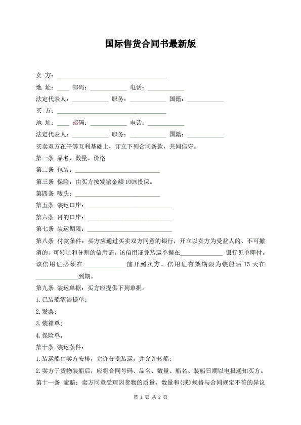 国际售货合同书最新版