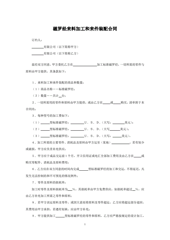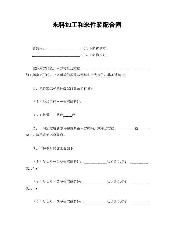 磁罗经来料加工和来件装配合同