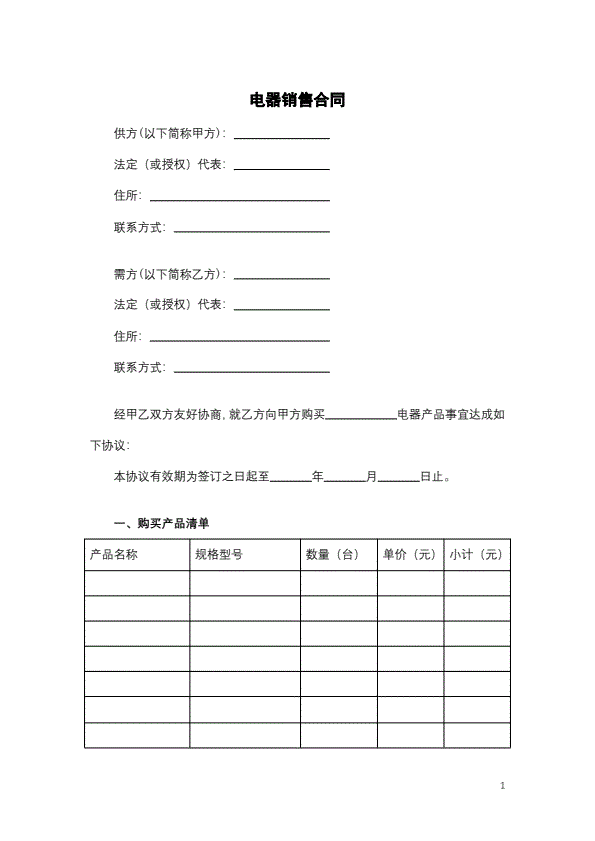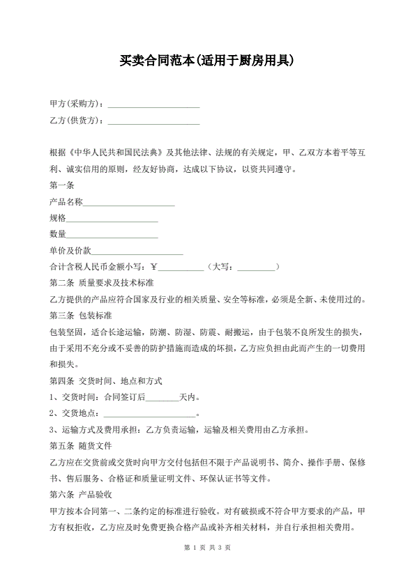 买卖合同范本(适用于厨房用具)