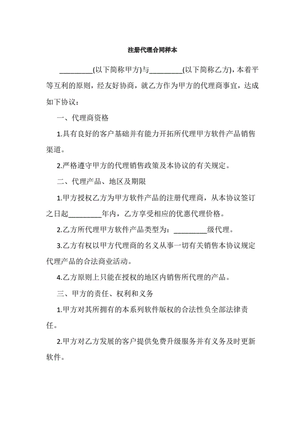 注册代理合同样本