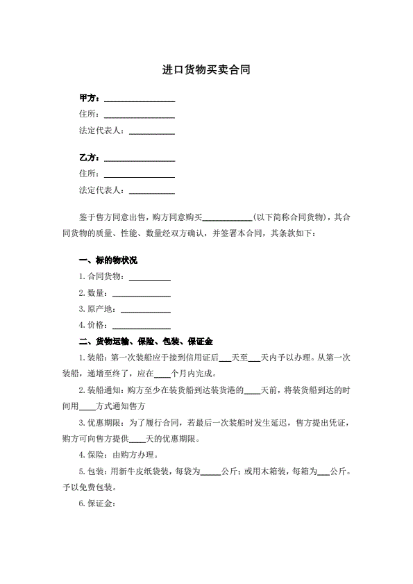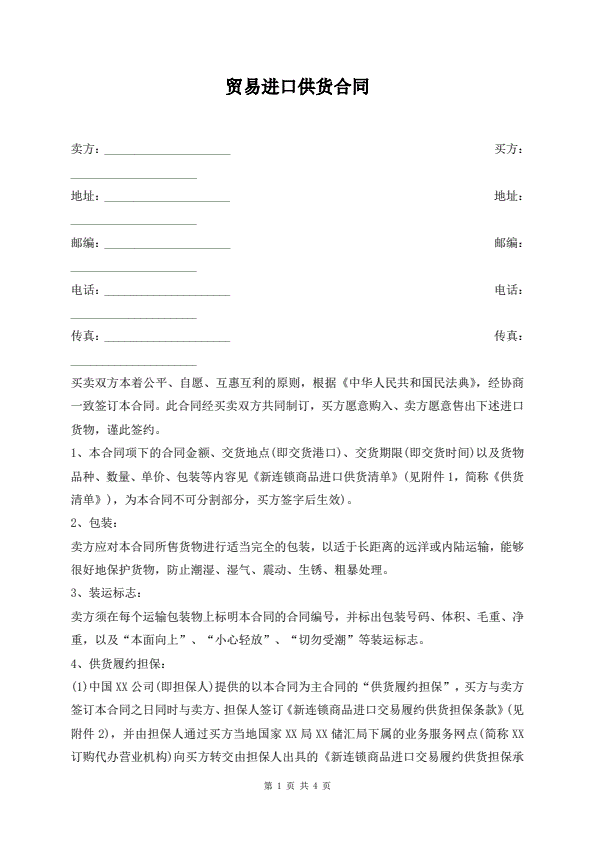 贸易进口供货合同